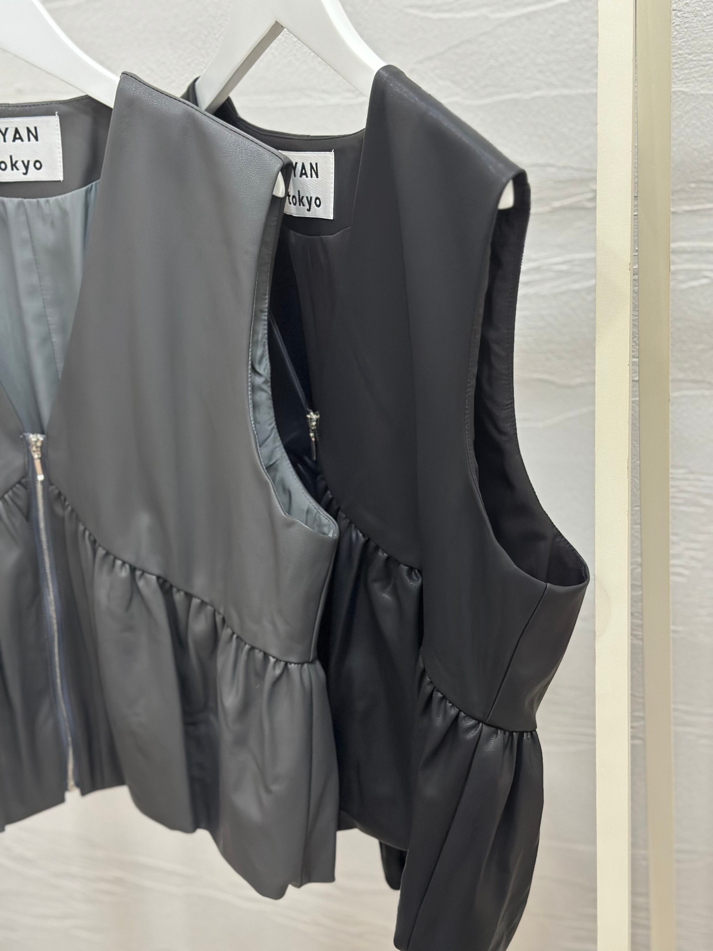 【CYAN A.W】ヴィーガンレザーバルーンギャザーベスト