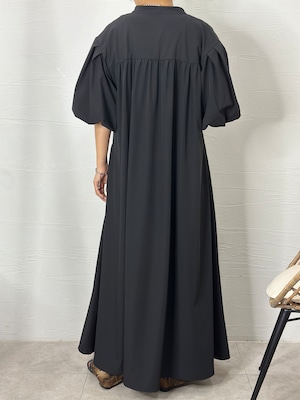 パフスリーブが大人可愛いデザインのシャツワンピース。