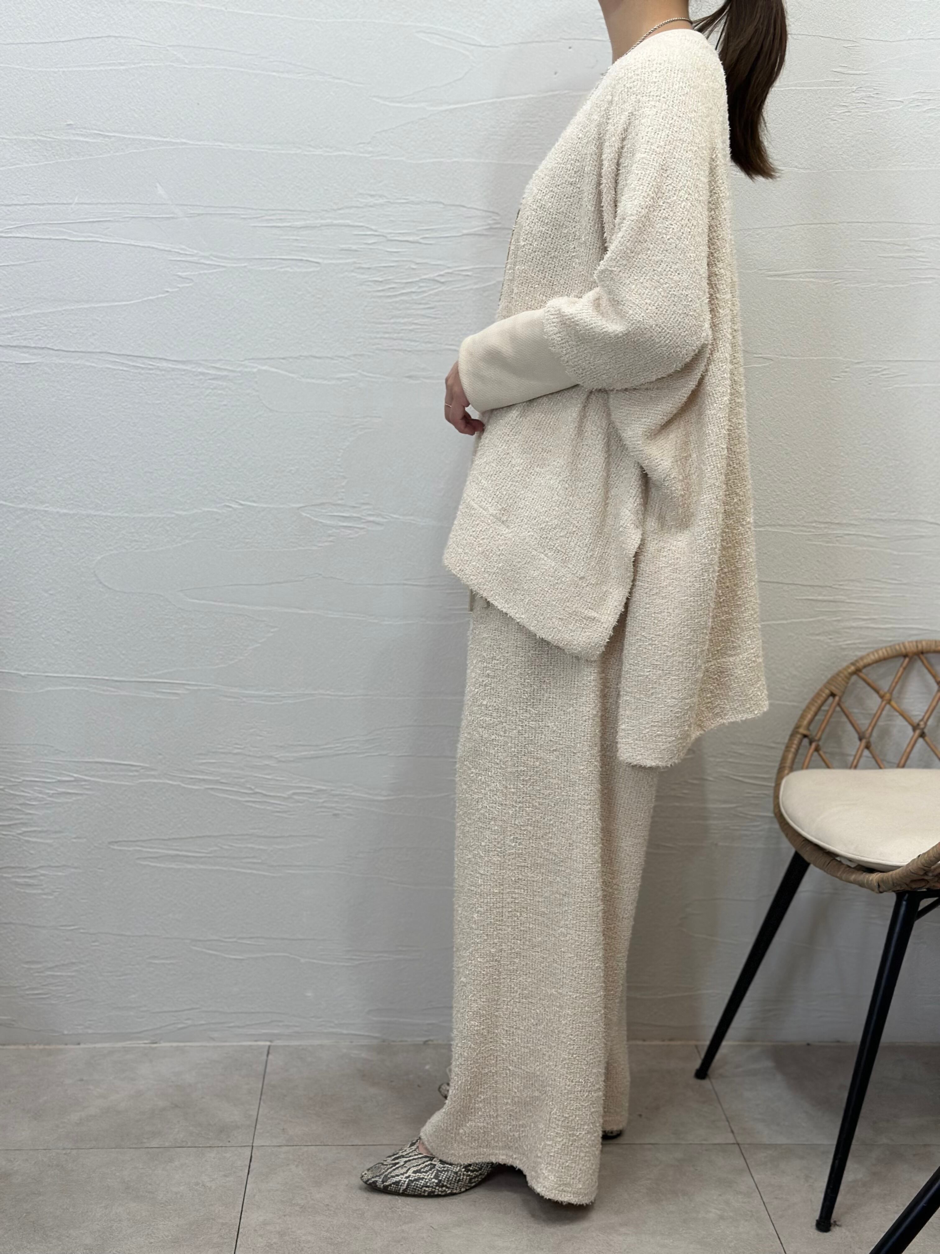 フェザーヤーンの優しい風合いが魅力的なオーバートップス。