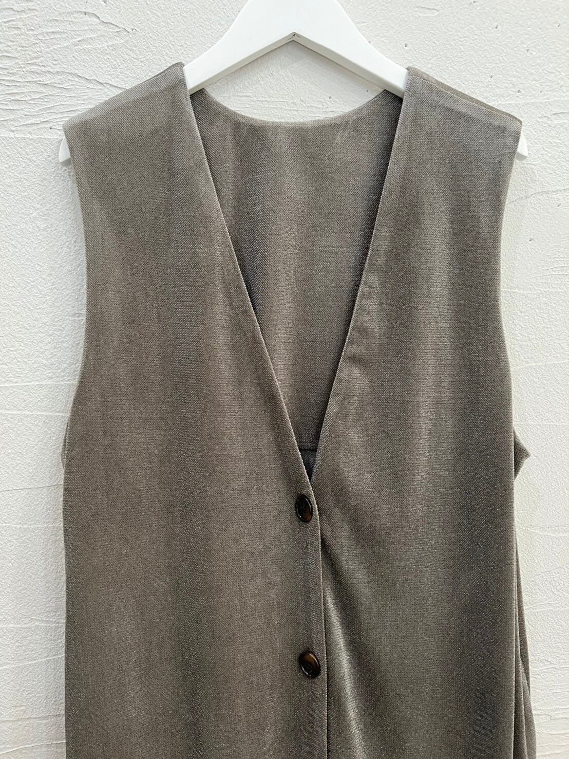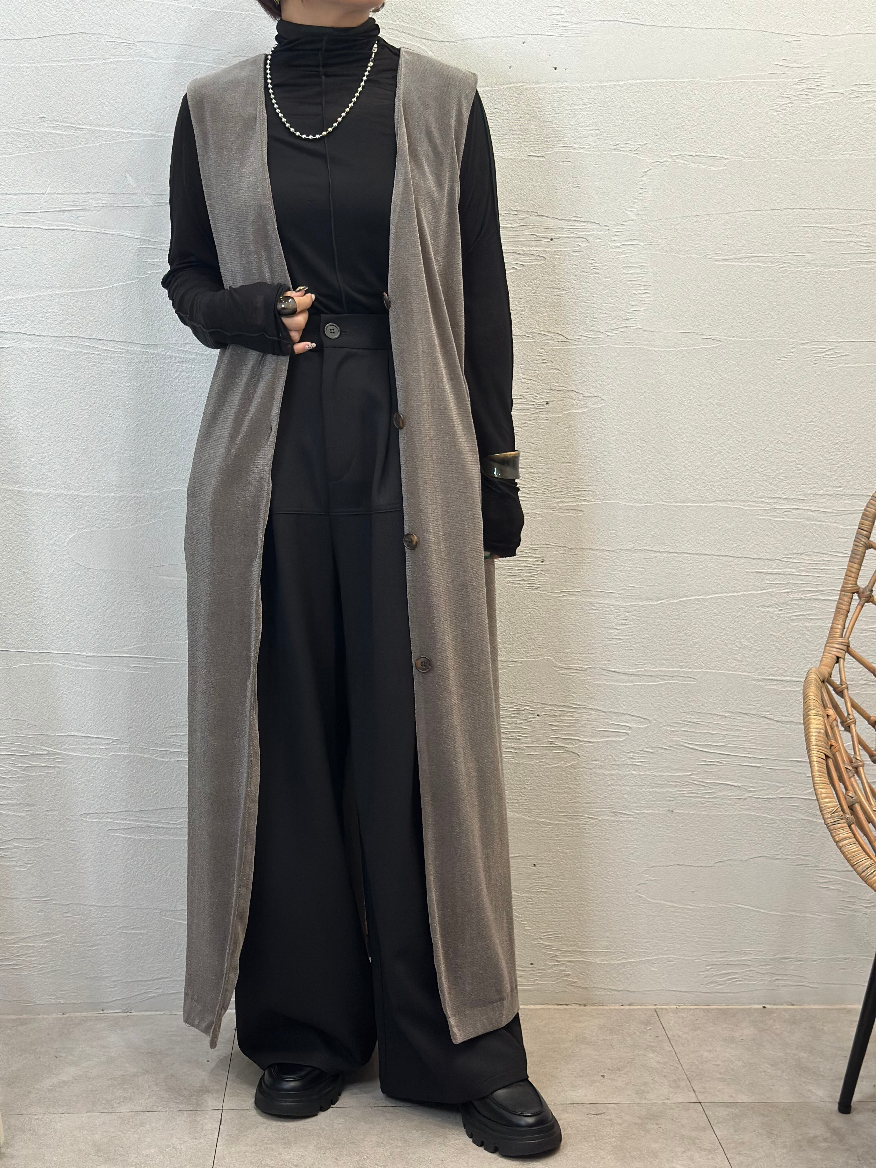 前後着用可能で、ボタンを外したジレスタイルもオススメです。