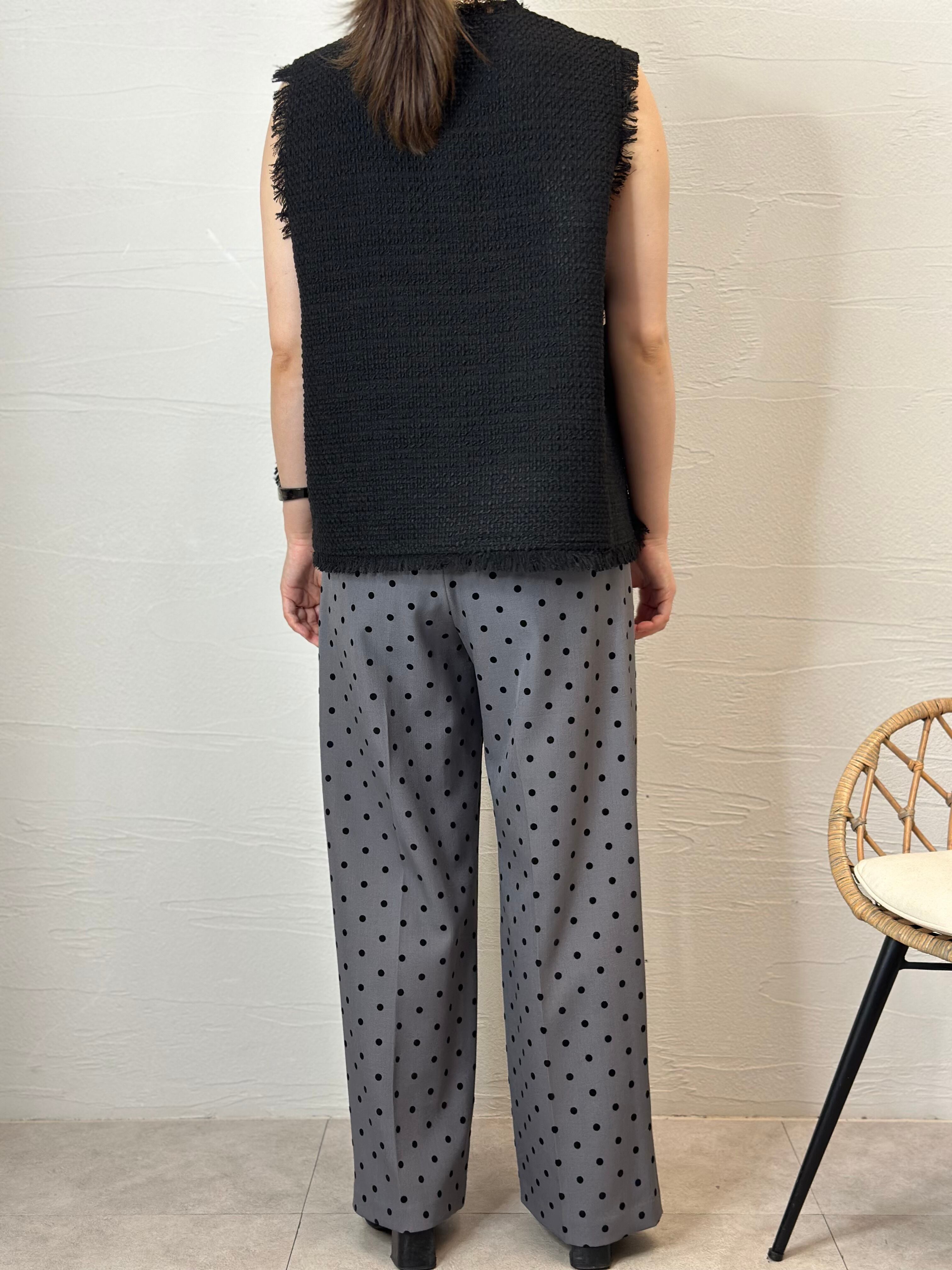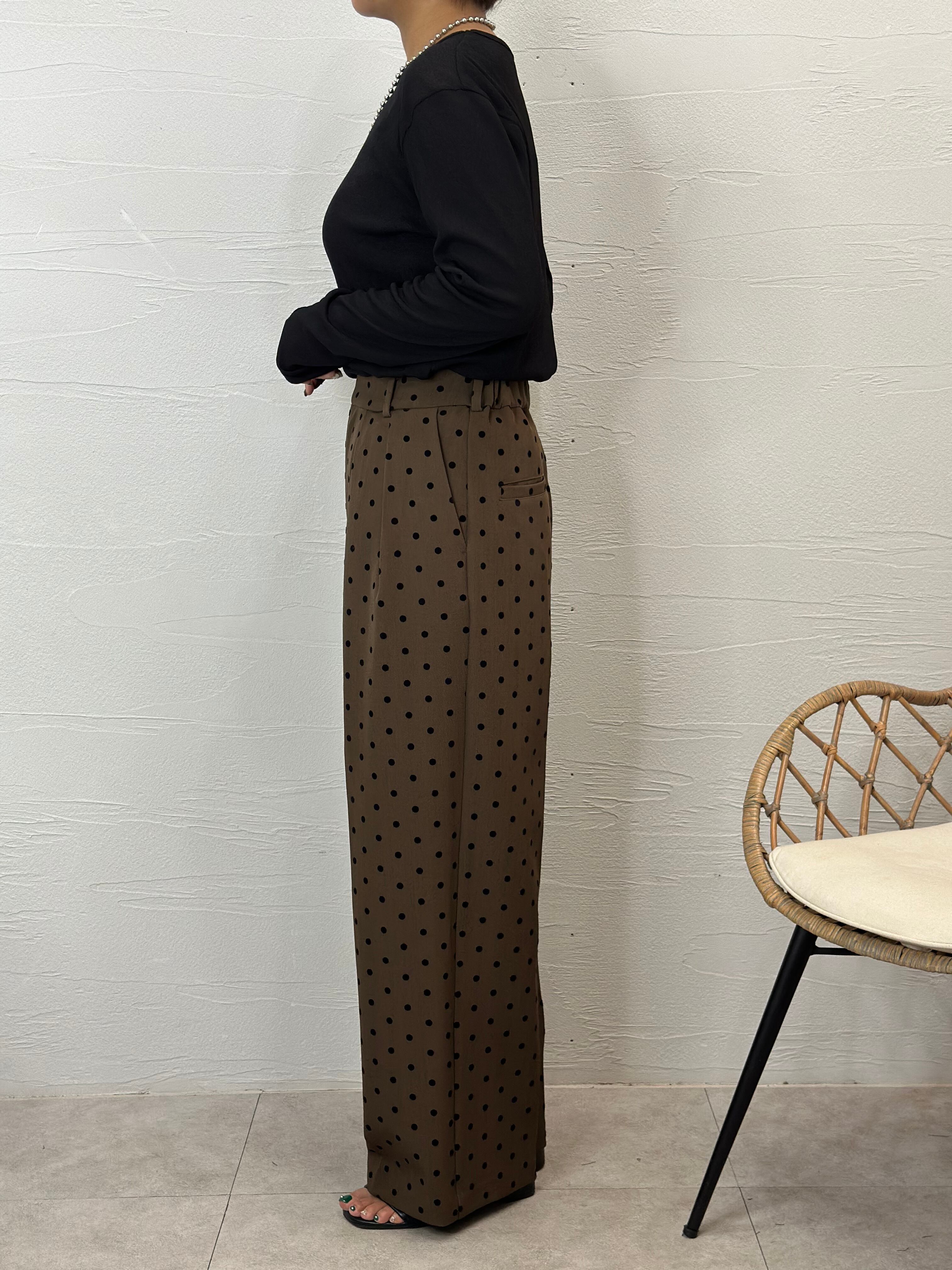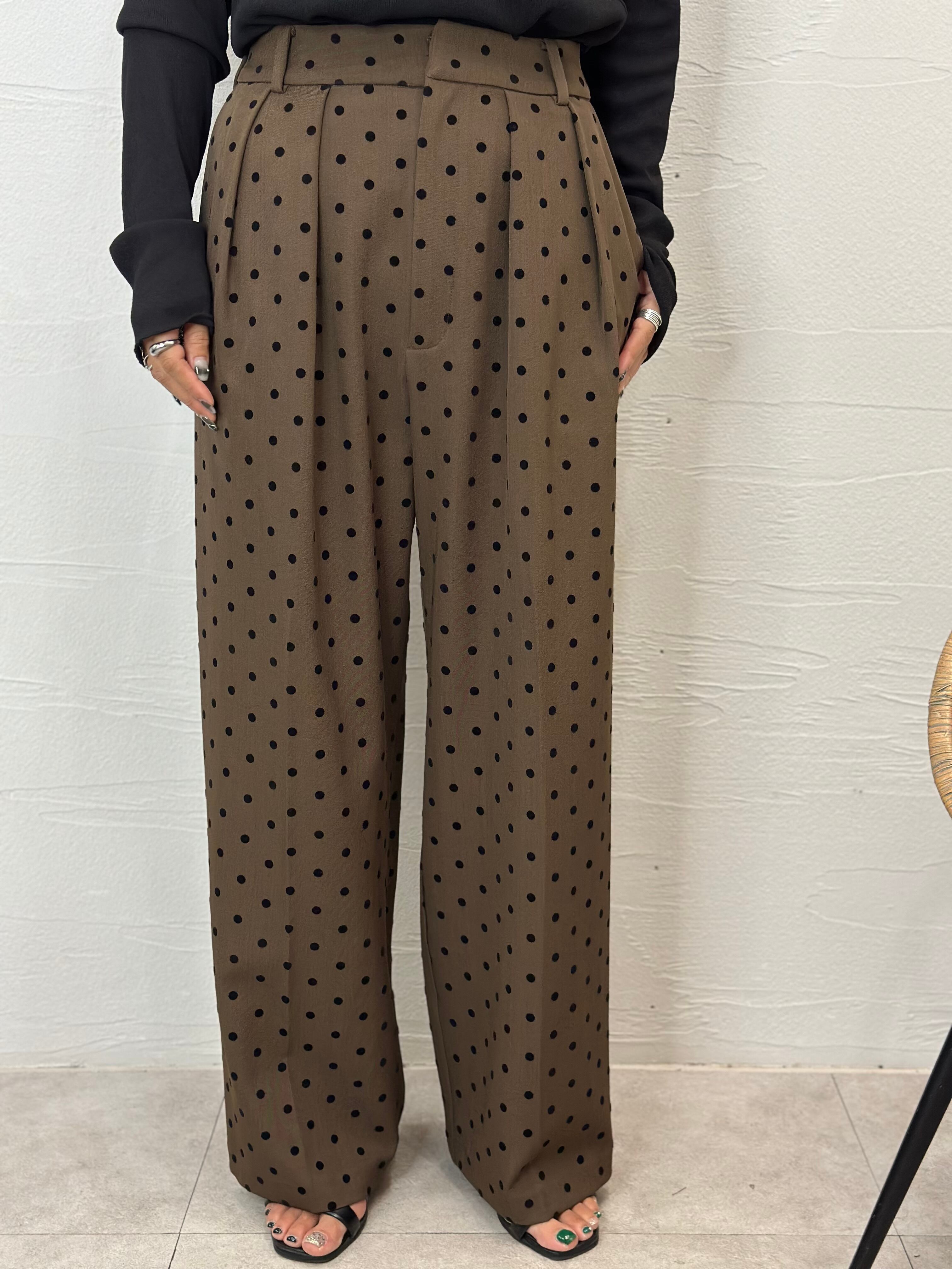 ドットはフロッキー加工で高見え間違いなしのタックパンツ。