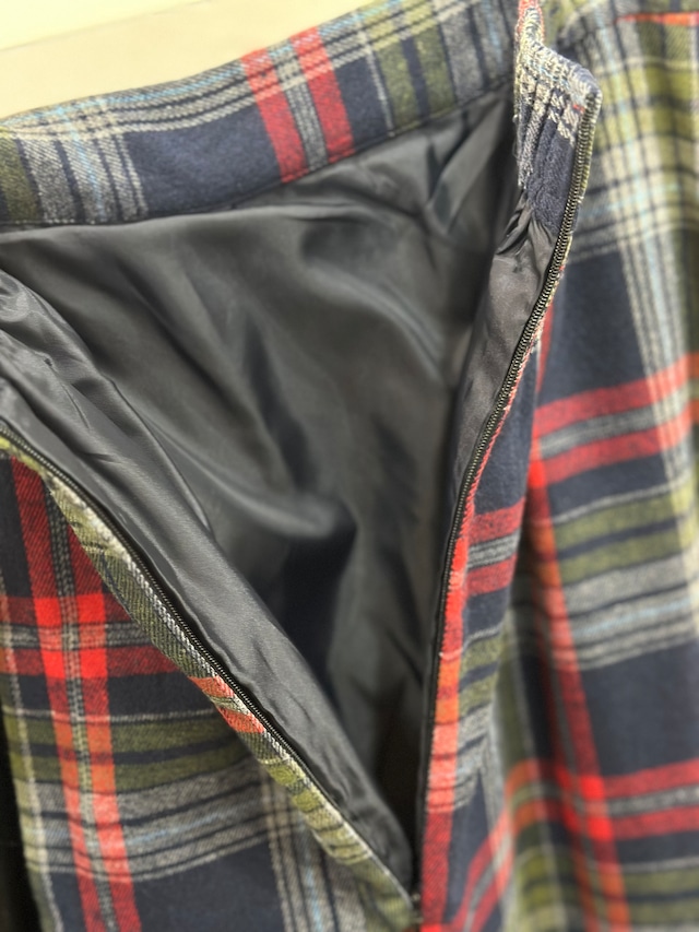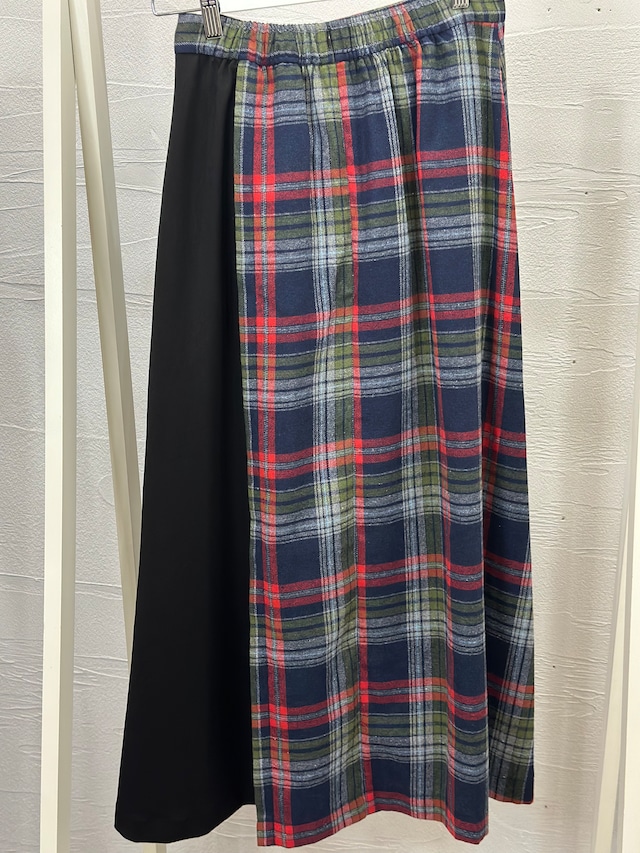 微起毛したチェック柄と伸縮性のあるジャージ素材がドッキングされたデザインスカート。