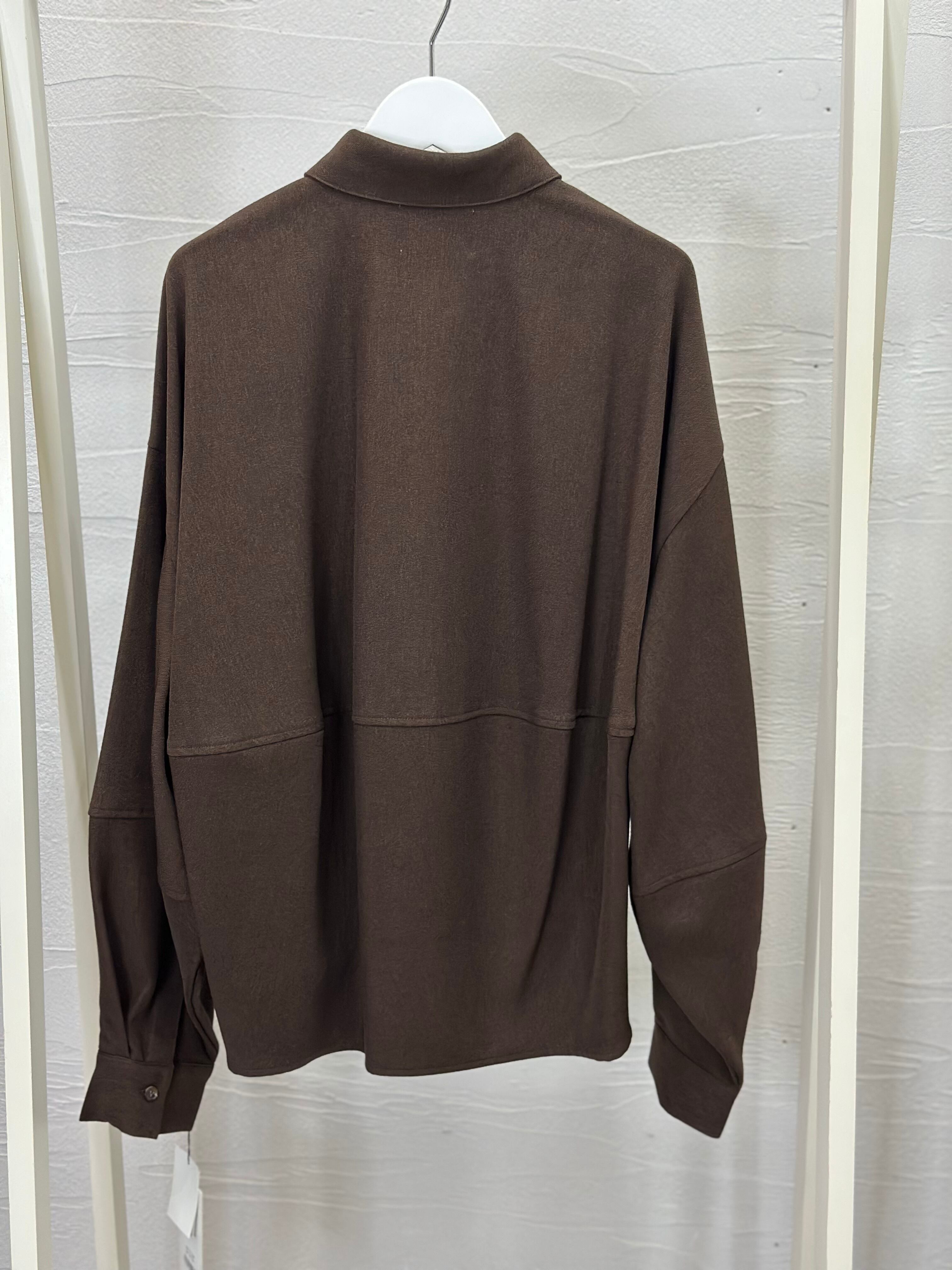 後ろにかけての丸みのあるシルエットと袖のデザインが特徴的なシャツブラウス。