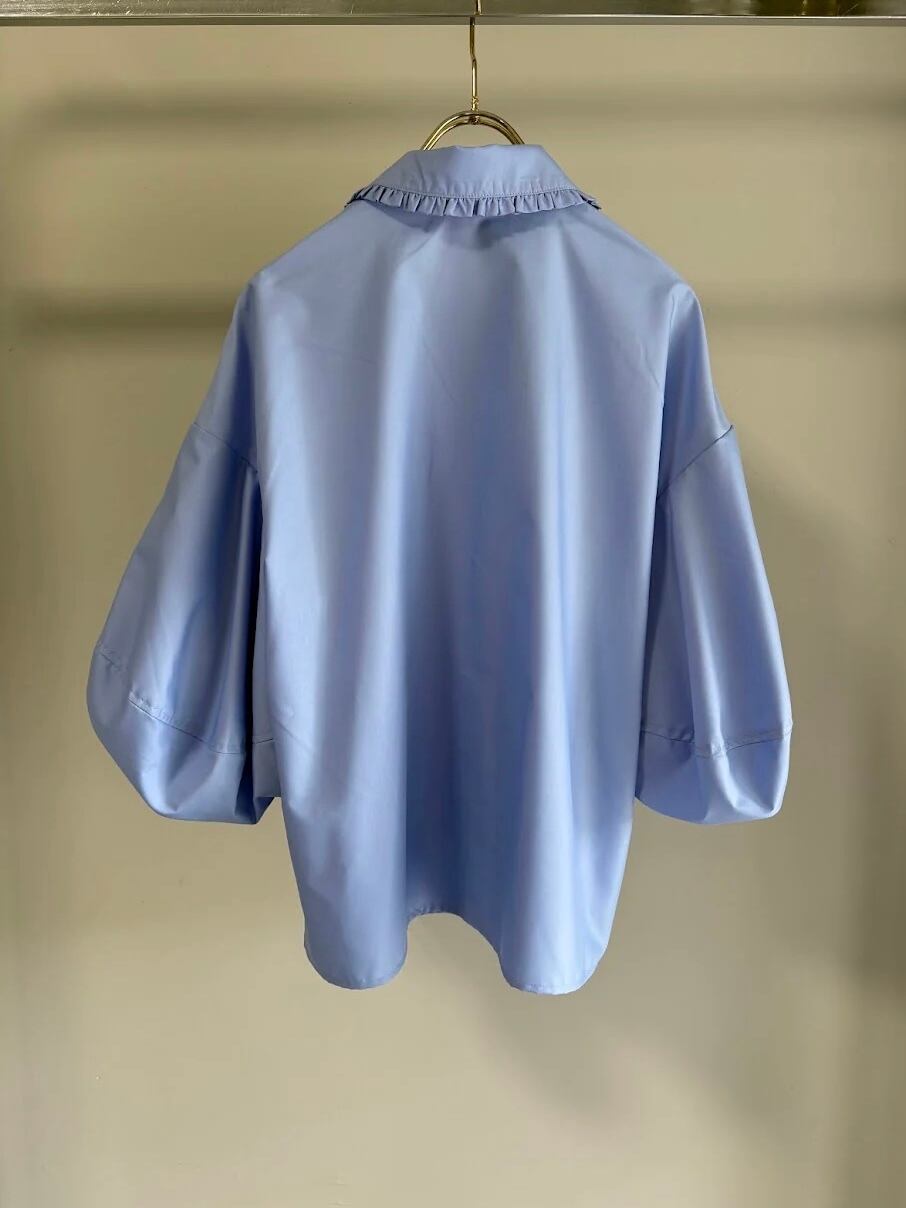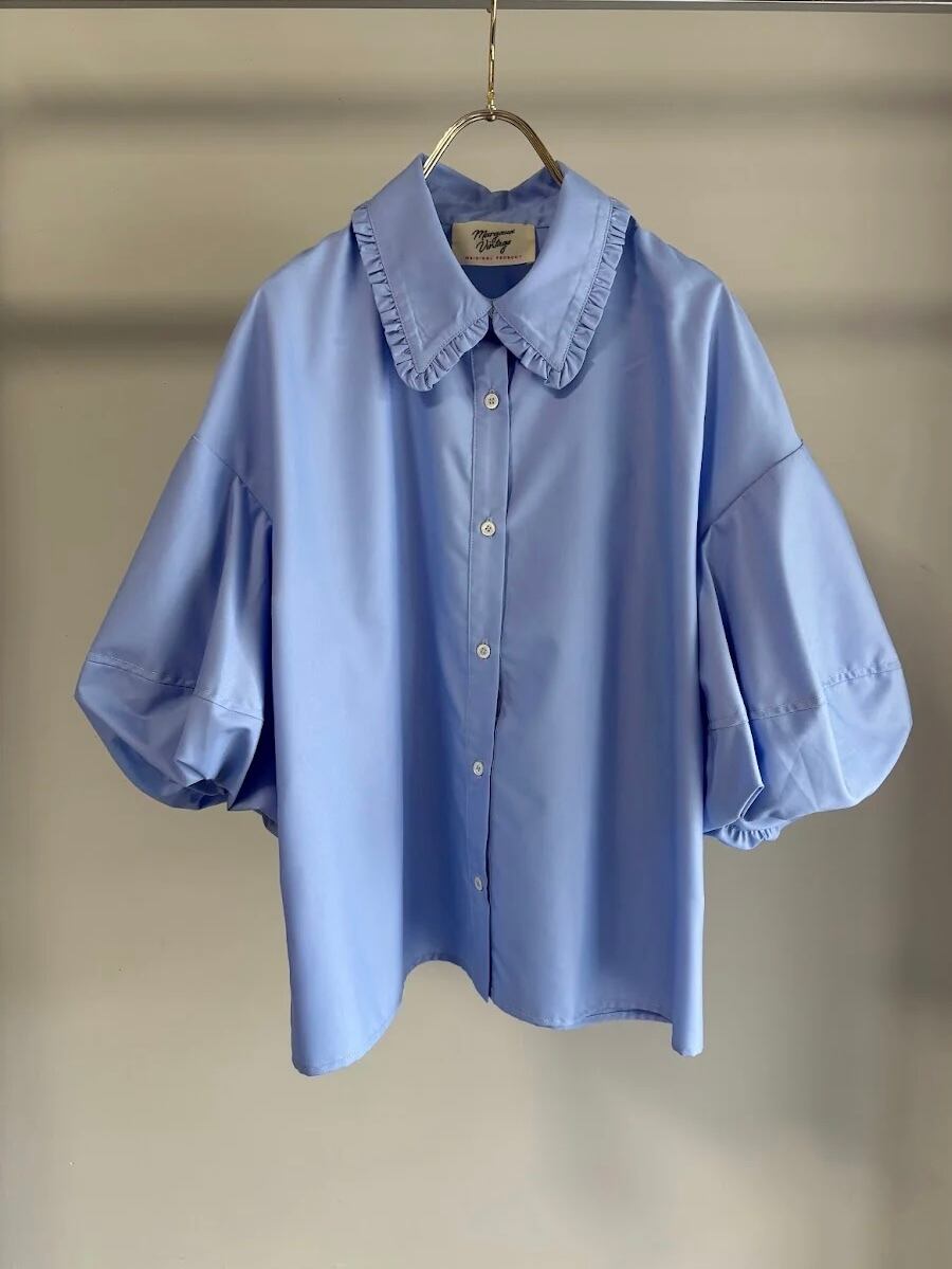 フリルモチーフの襟とパフスリーブデザインが可愛いシャツです。
