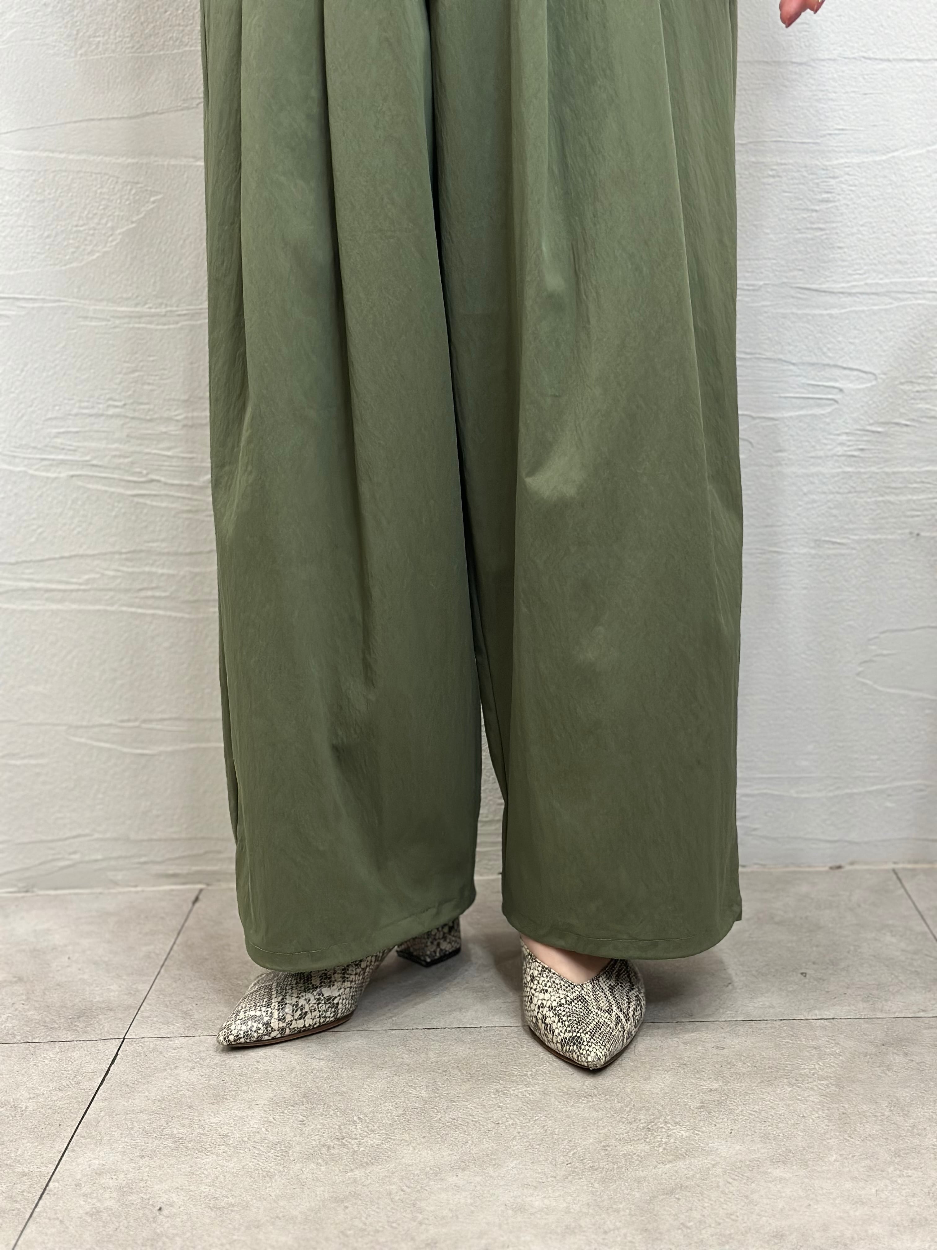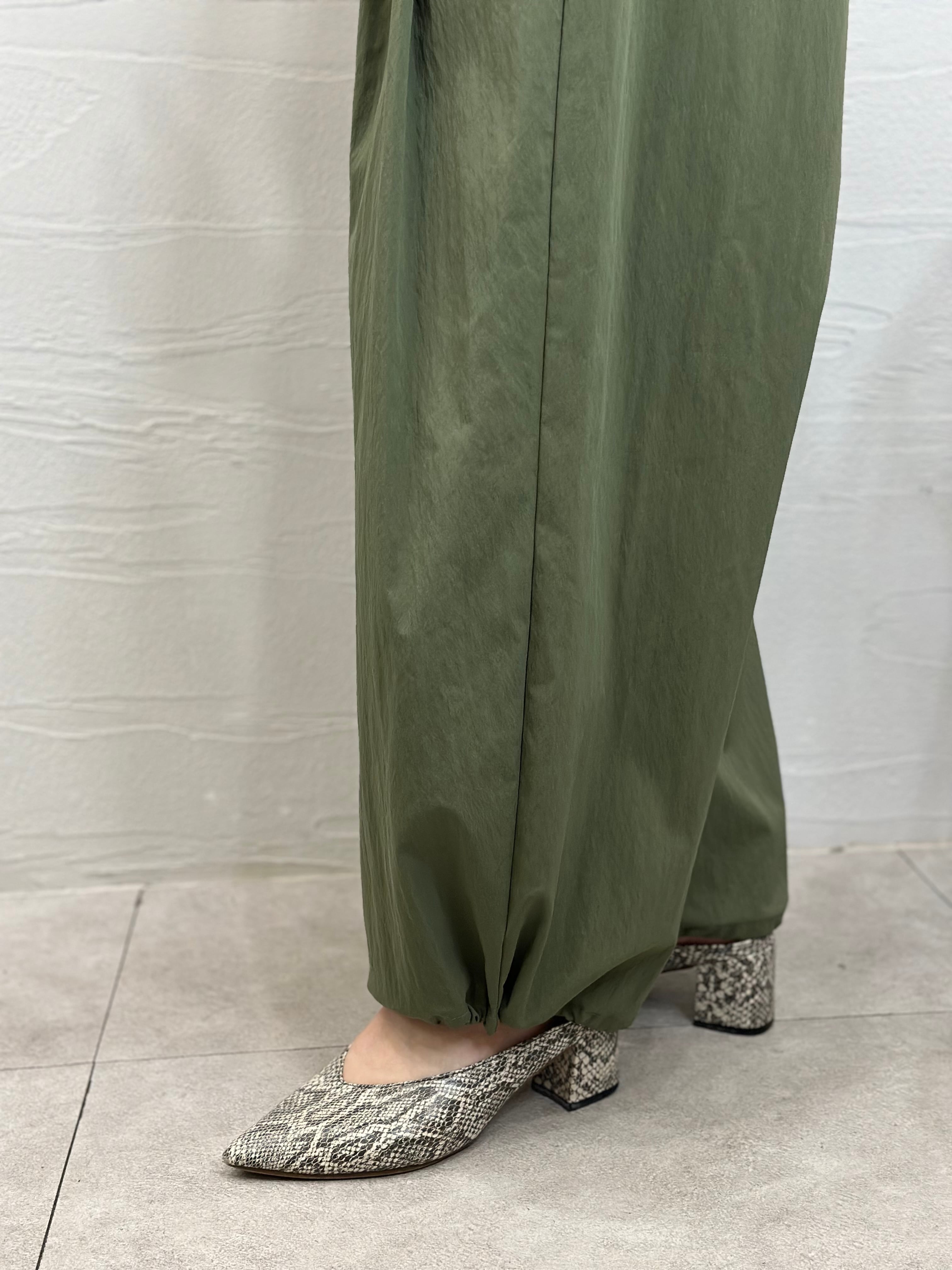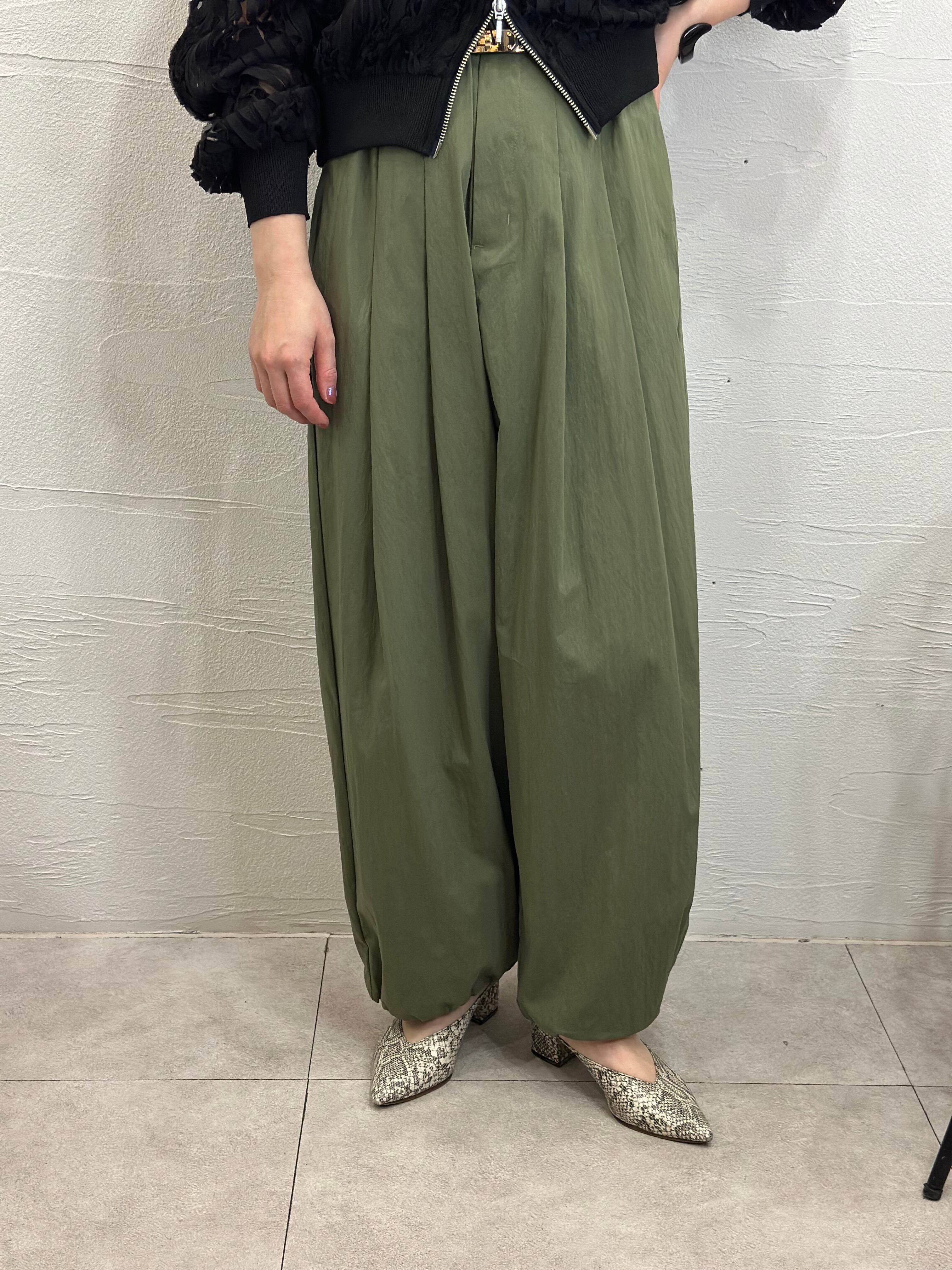 立体感のある2タック仕様のワイドパンツは裾のドロスト調整で2wayのシルエットをお楽しみ頂けます。