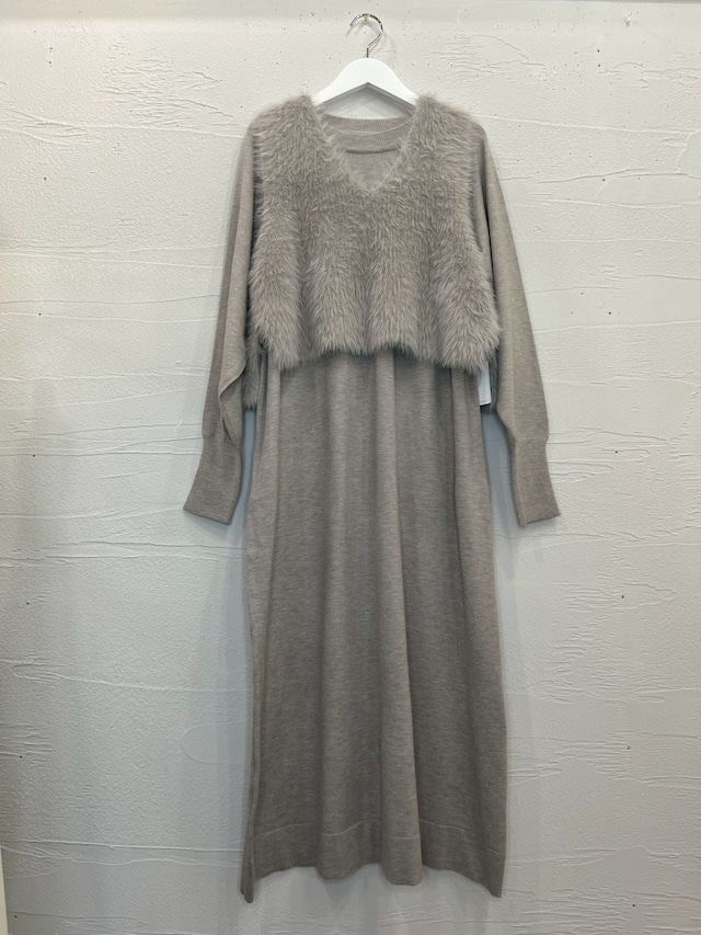 フェザーヤーンのニットベストとハイゲージニットワンピースのセットアイテム。