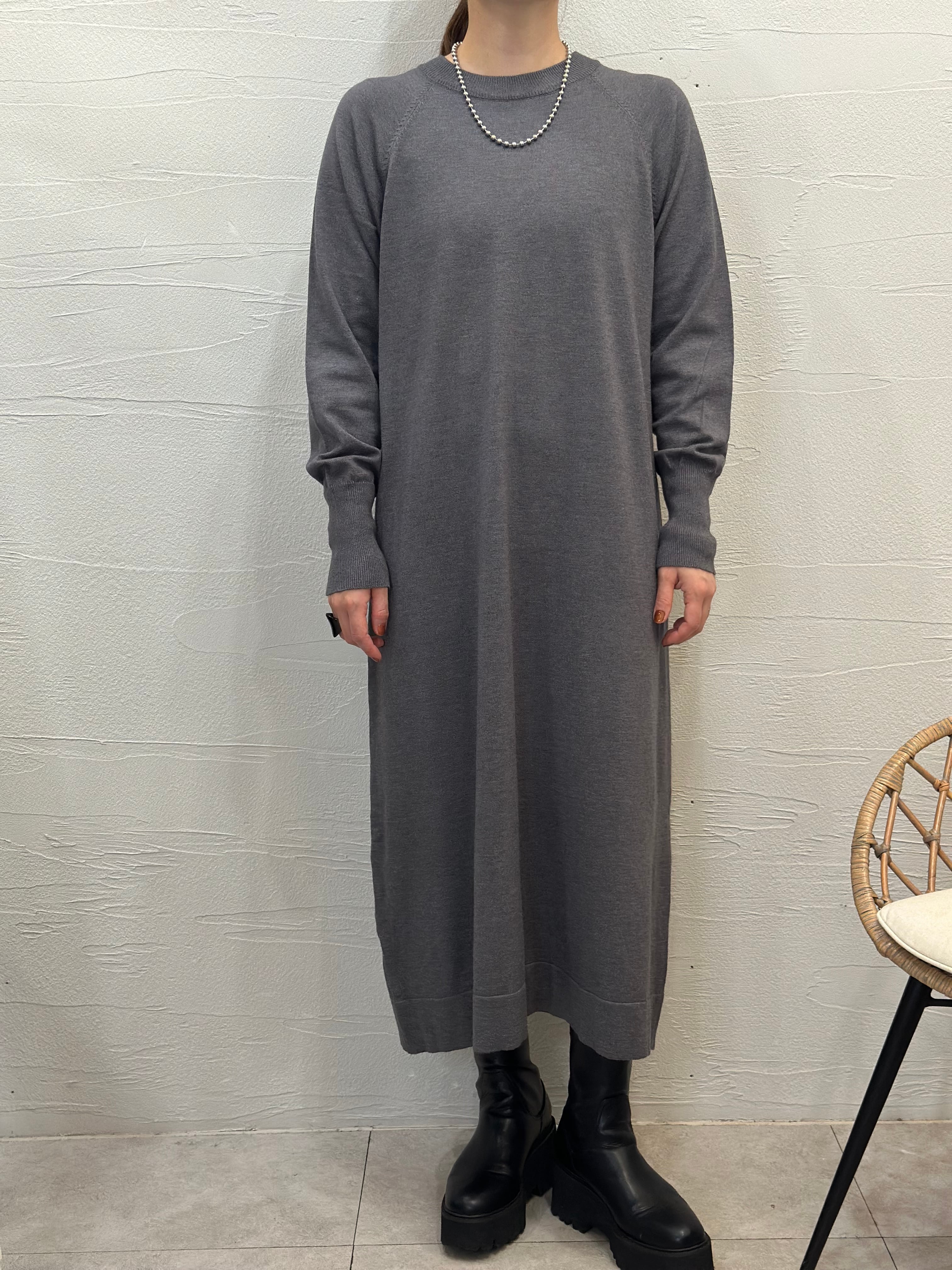 ワンピースはラグランスリーブでカラダのラインを拾いにくいシンプルなデザインに。