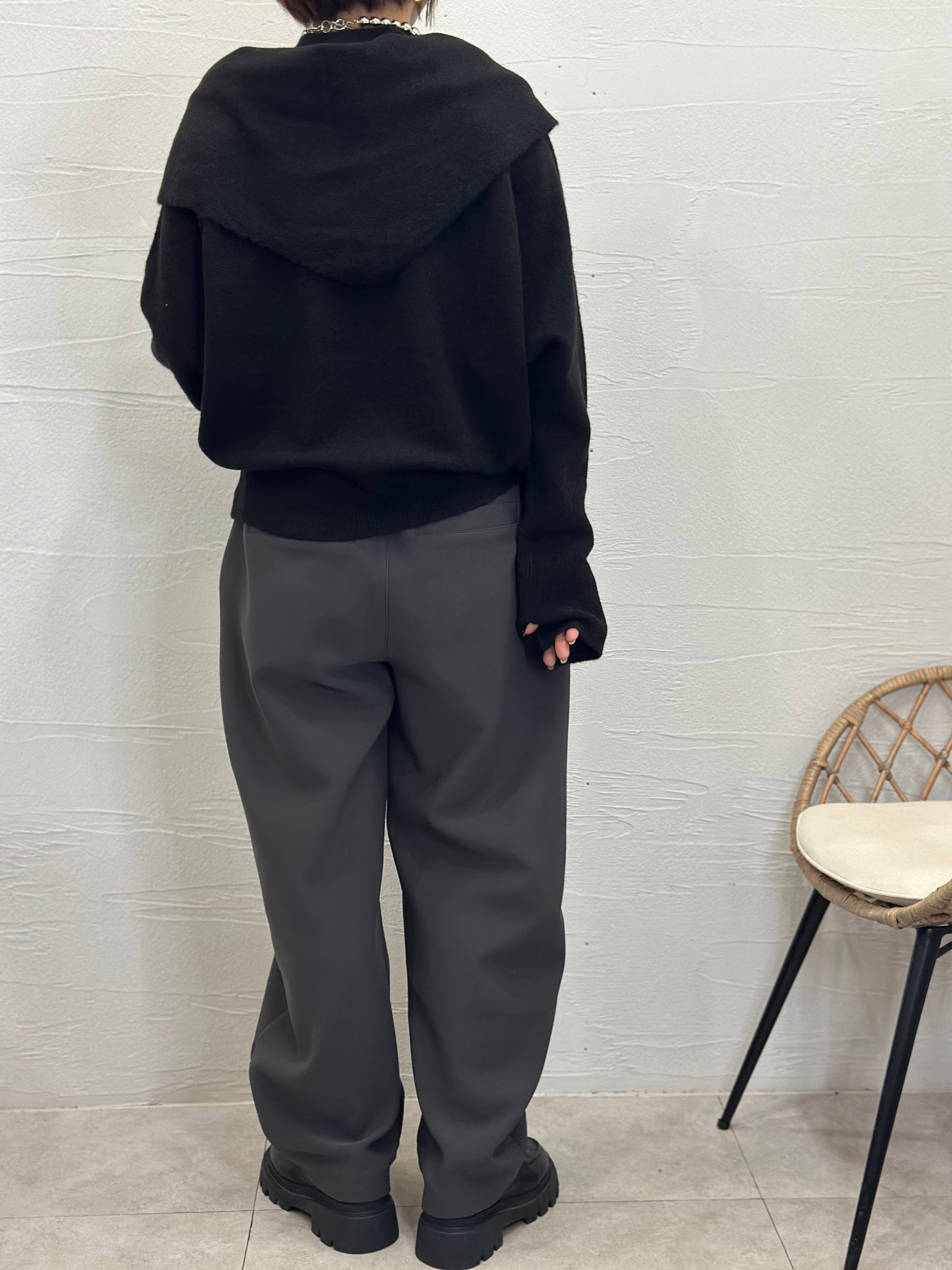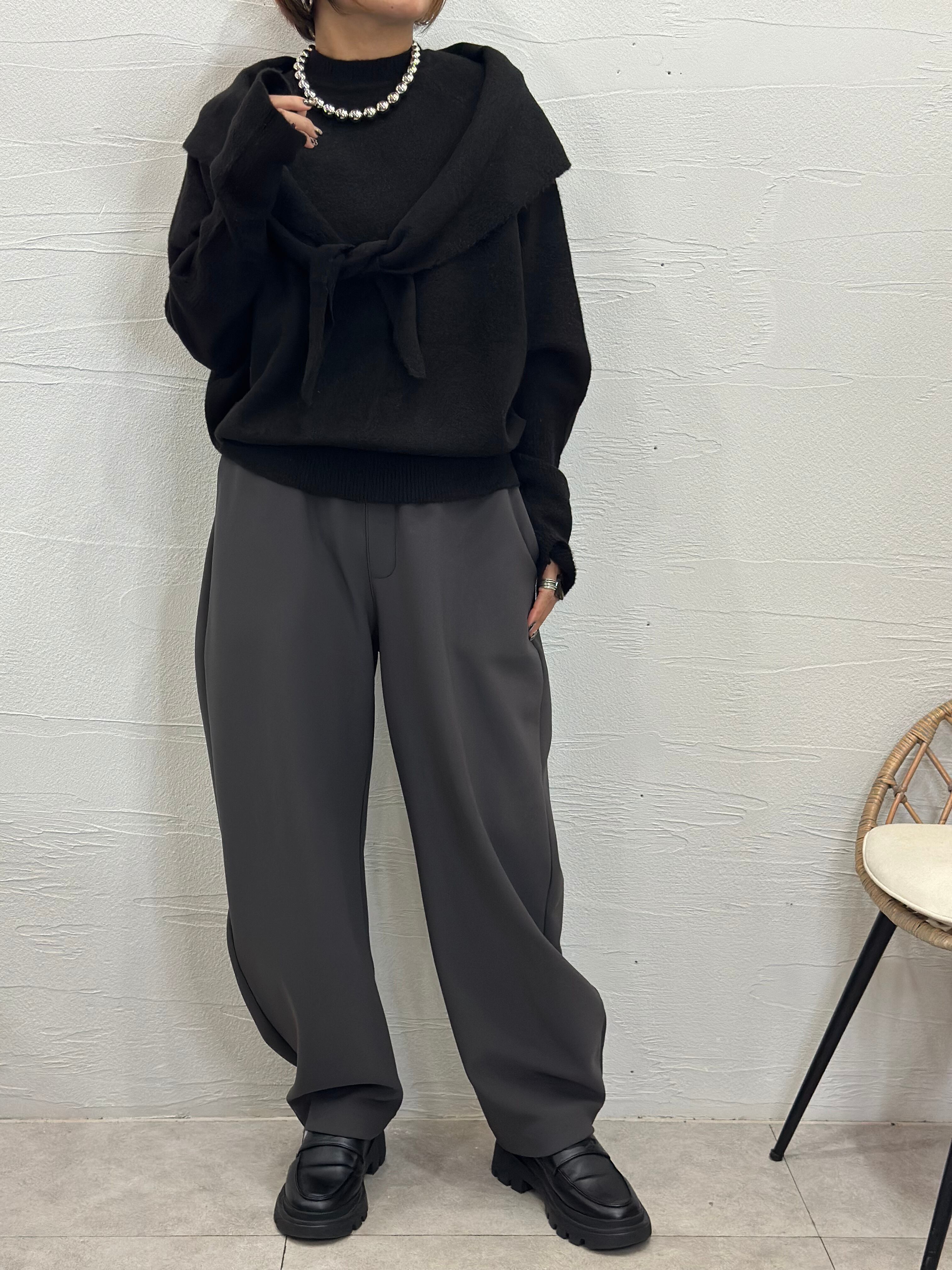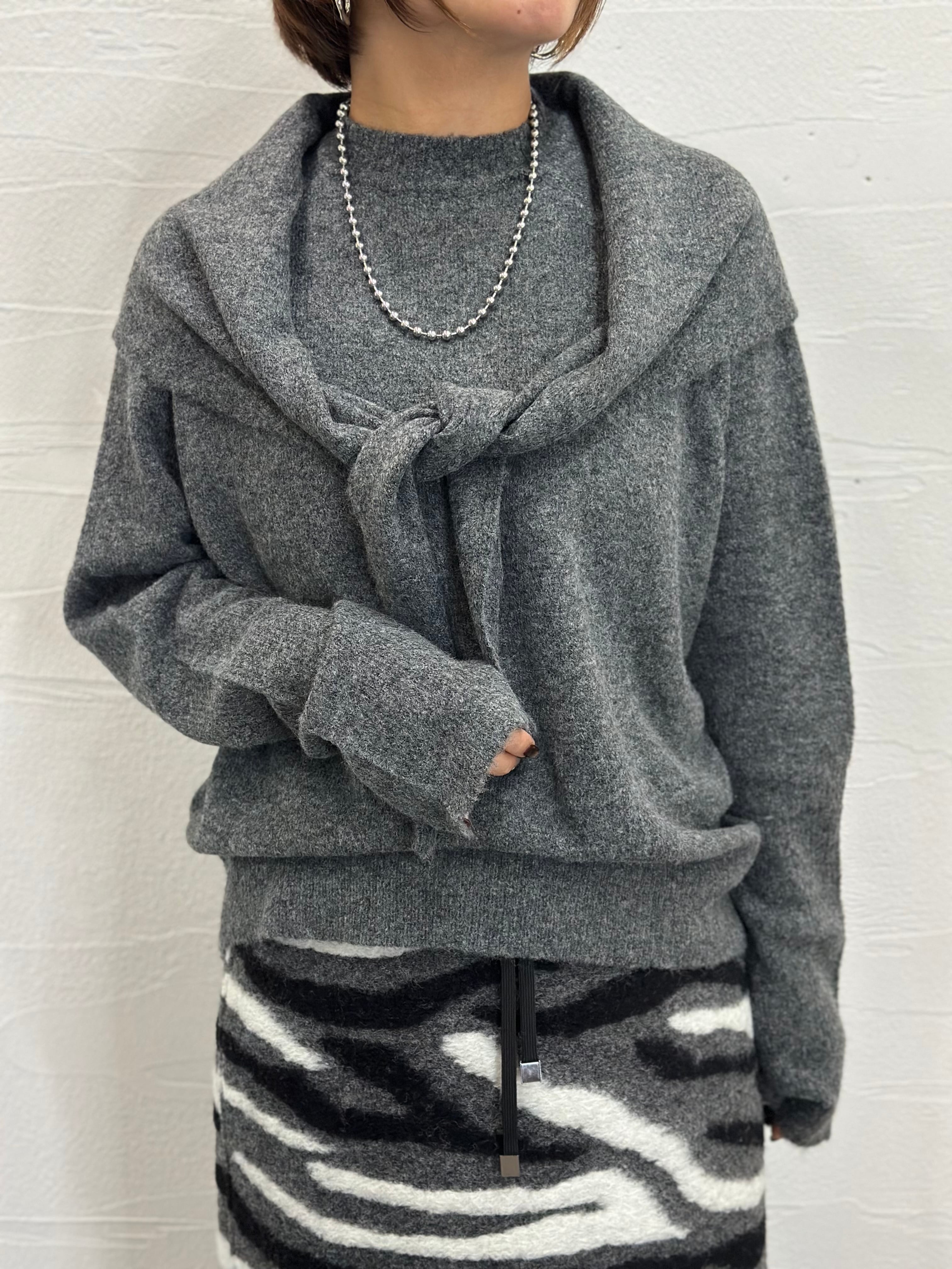 着心地の良い柔らか素材のニットトップスとストールのセットアイテム。