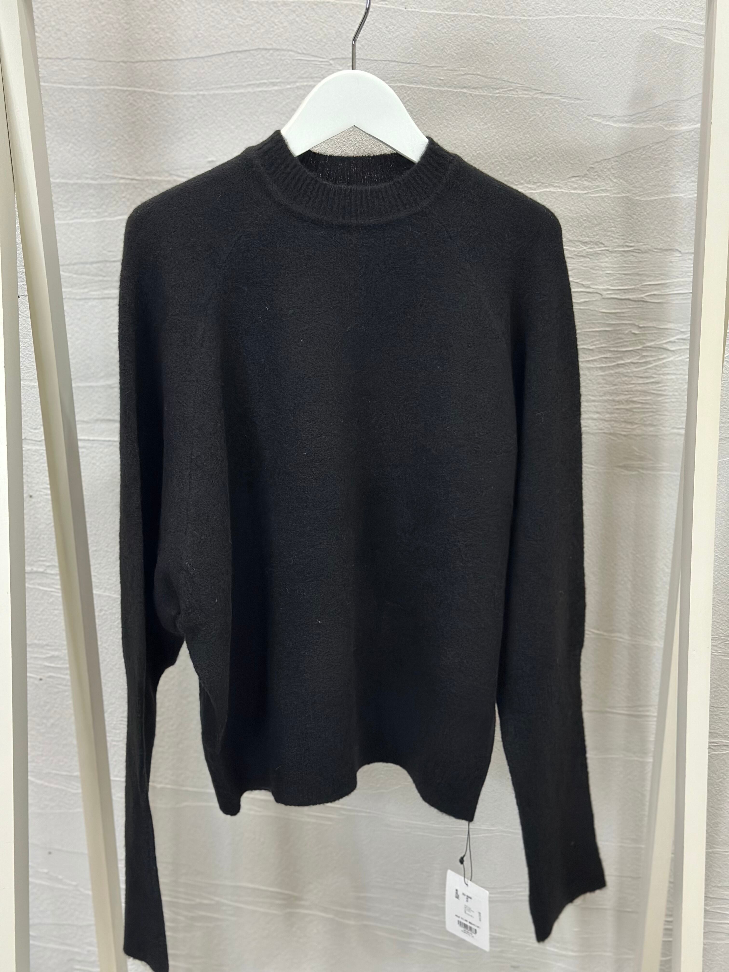 ラグラン袖のトップスはコンパクトなシルエットで長めの袖口に指穴付きです。
