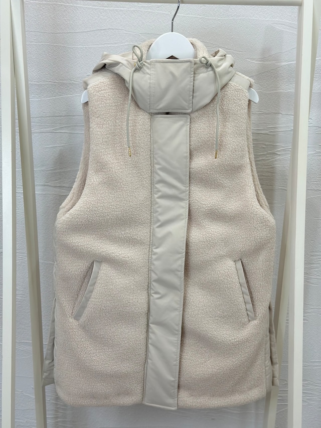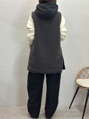 ボア×中わた素材ながらスッキリとしたシルエットのベストです。