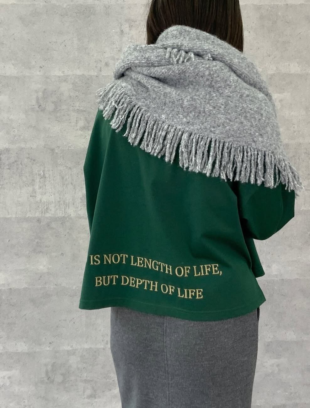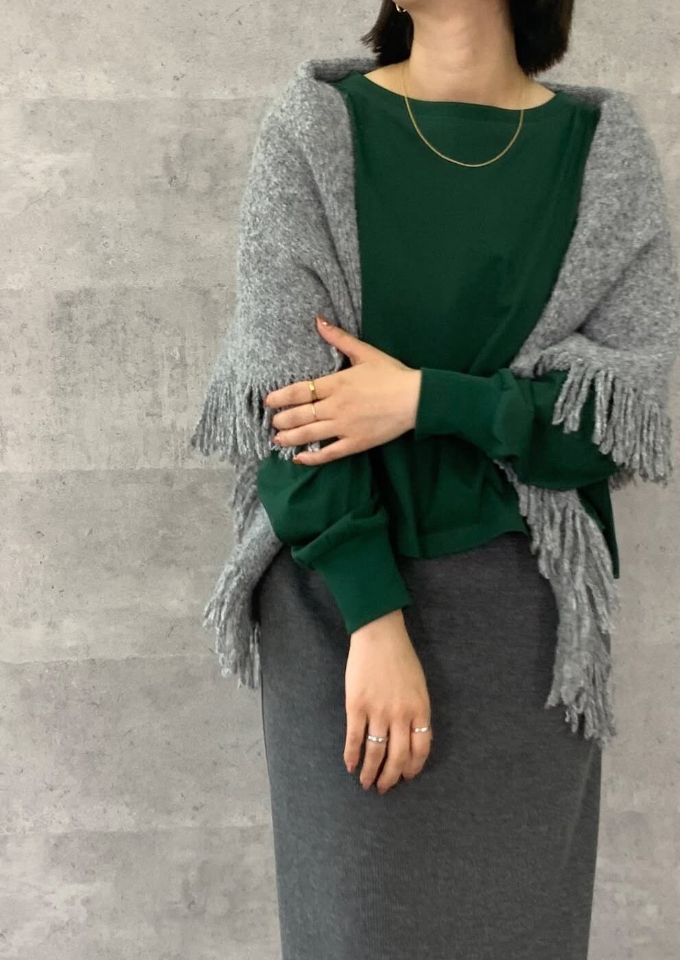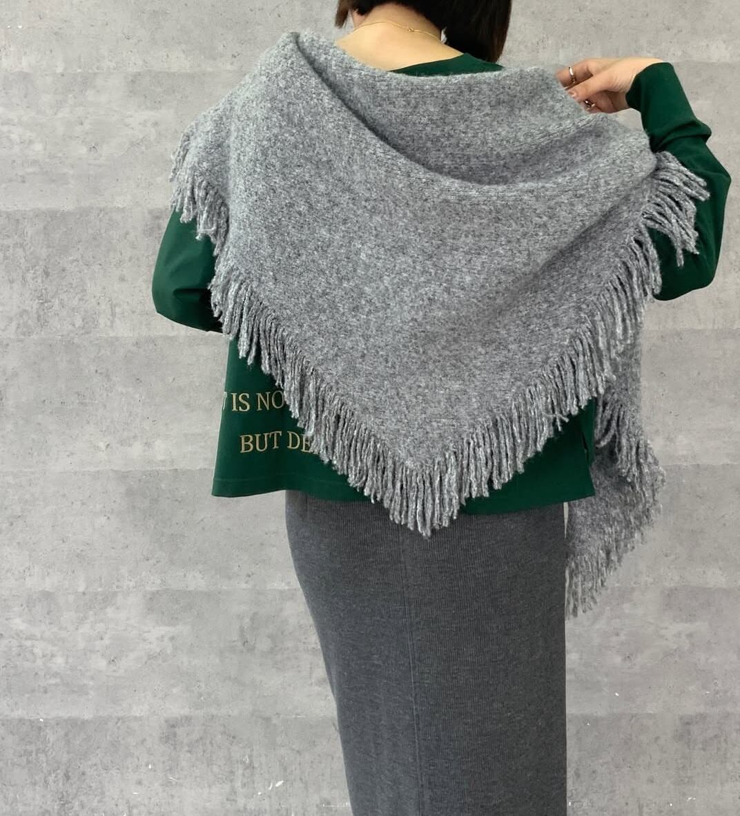 サンカクシルエットで肩がけしたりパッと簡単オシャレ巻きができます。