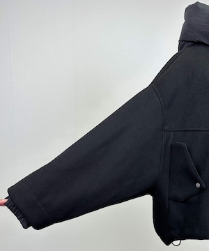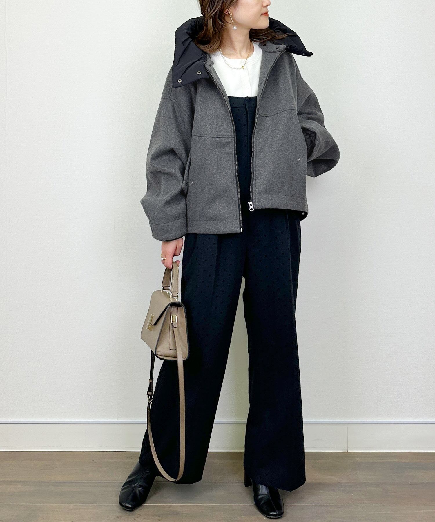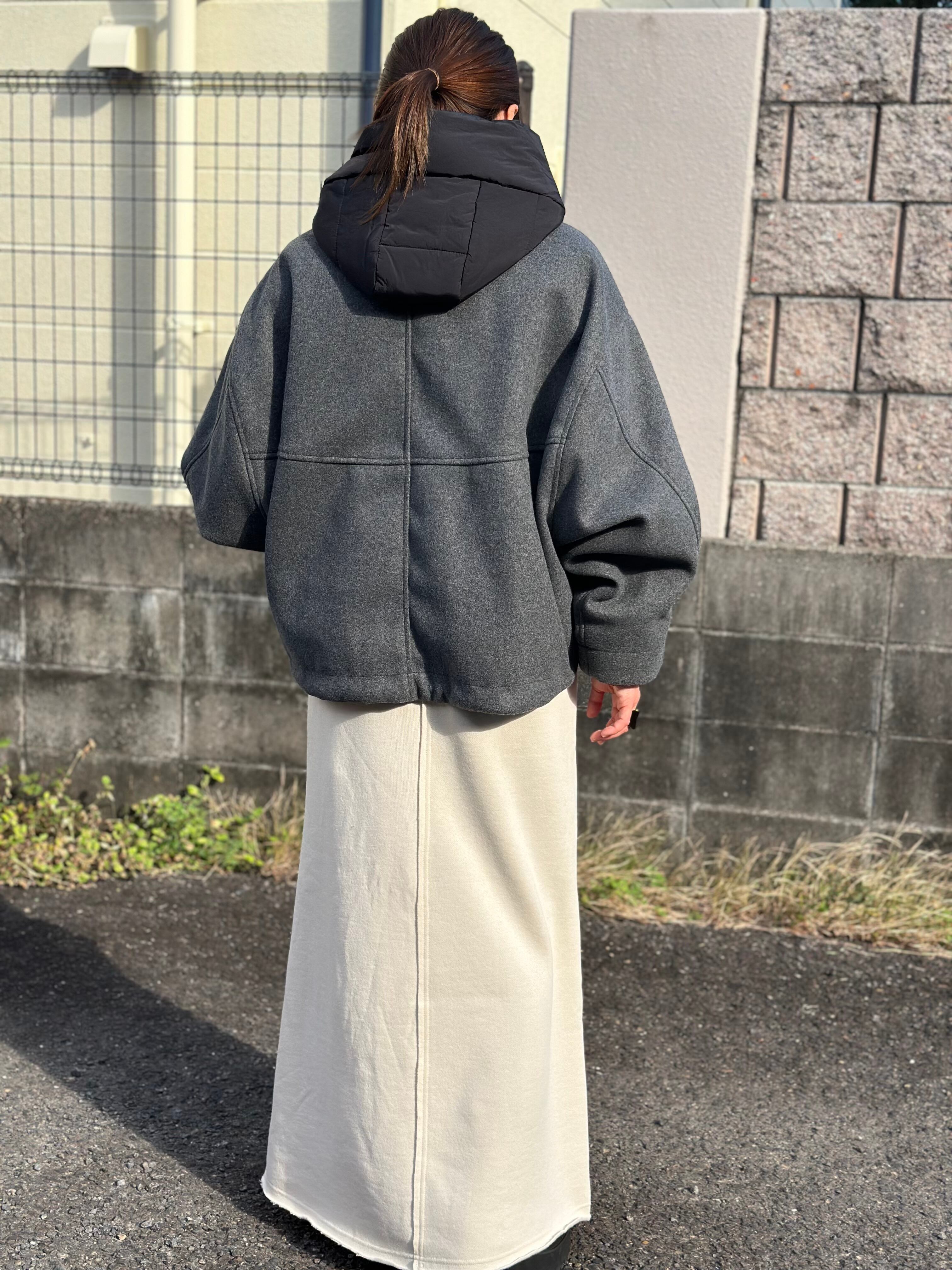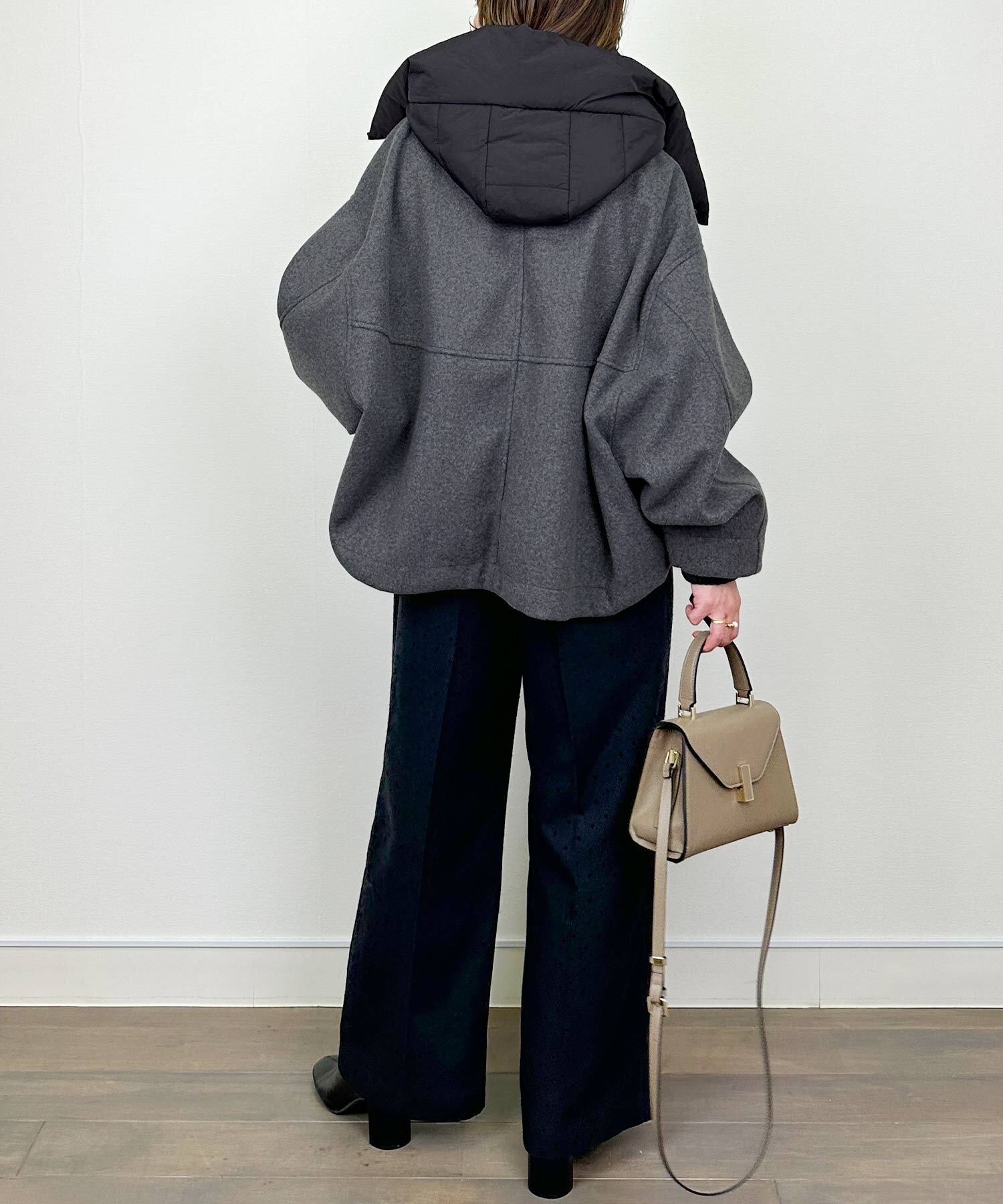 袖口とボリューミーなフードには、中綿入りの異素材使いでさりげないアクセントとぬくもりをプラス。