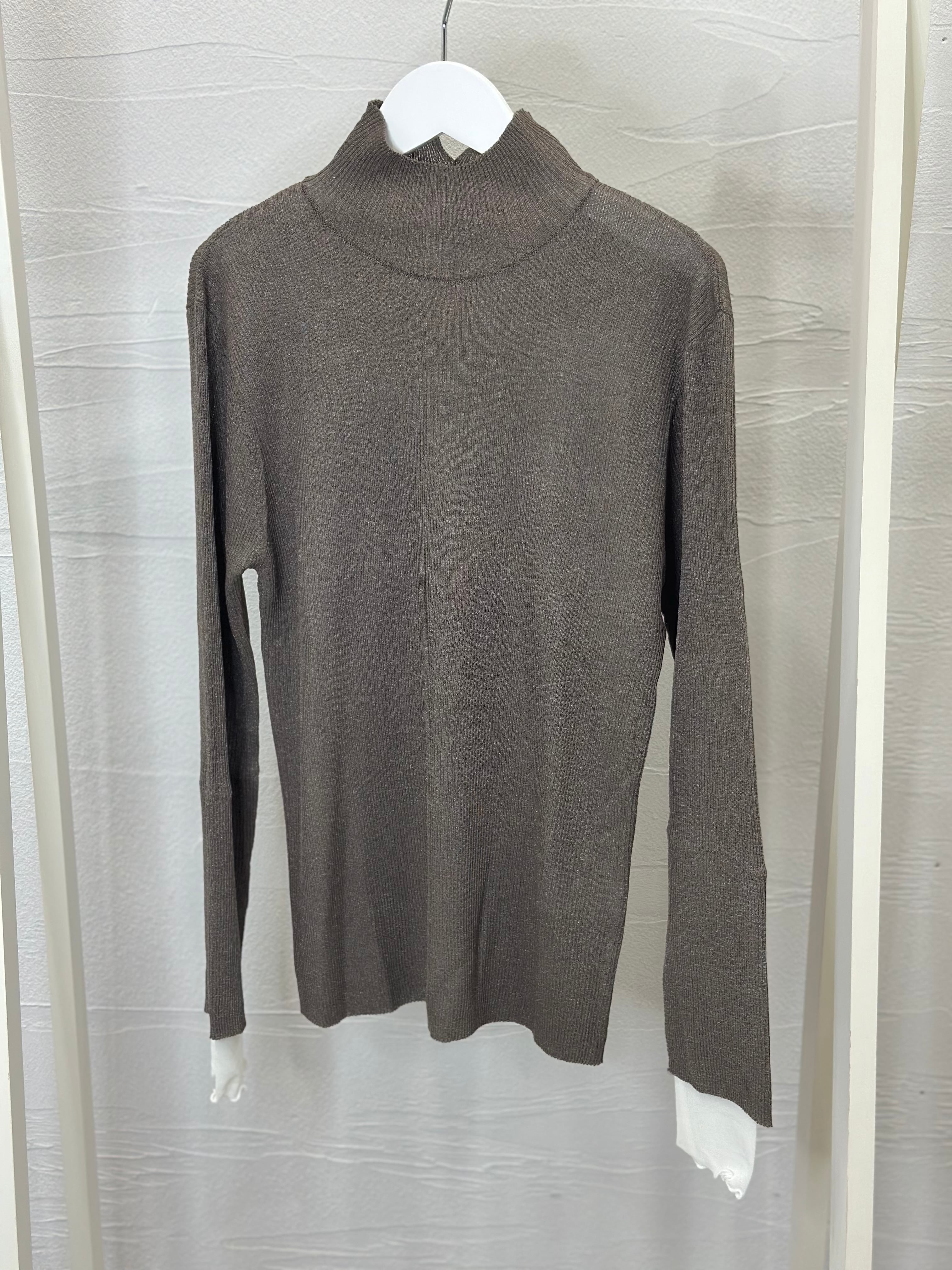 袖口にチュールがレイヤードされたニットプルオーバー。
