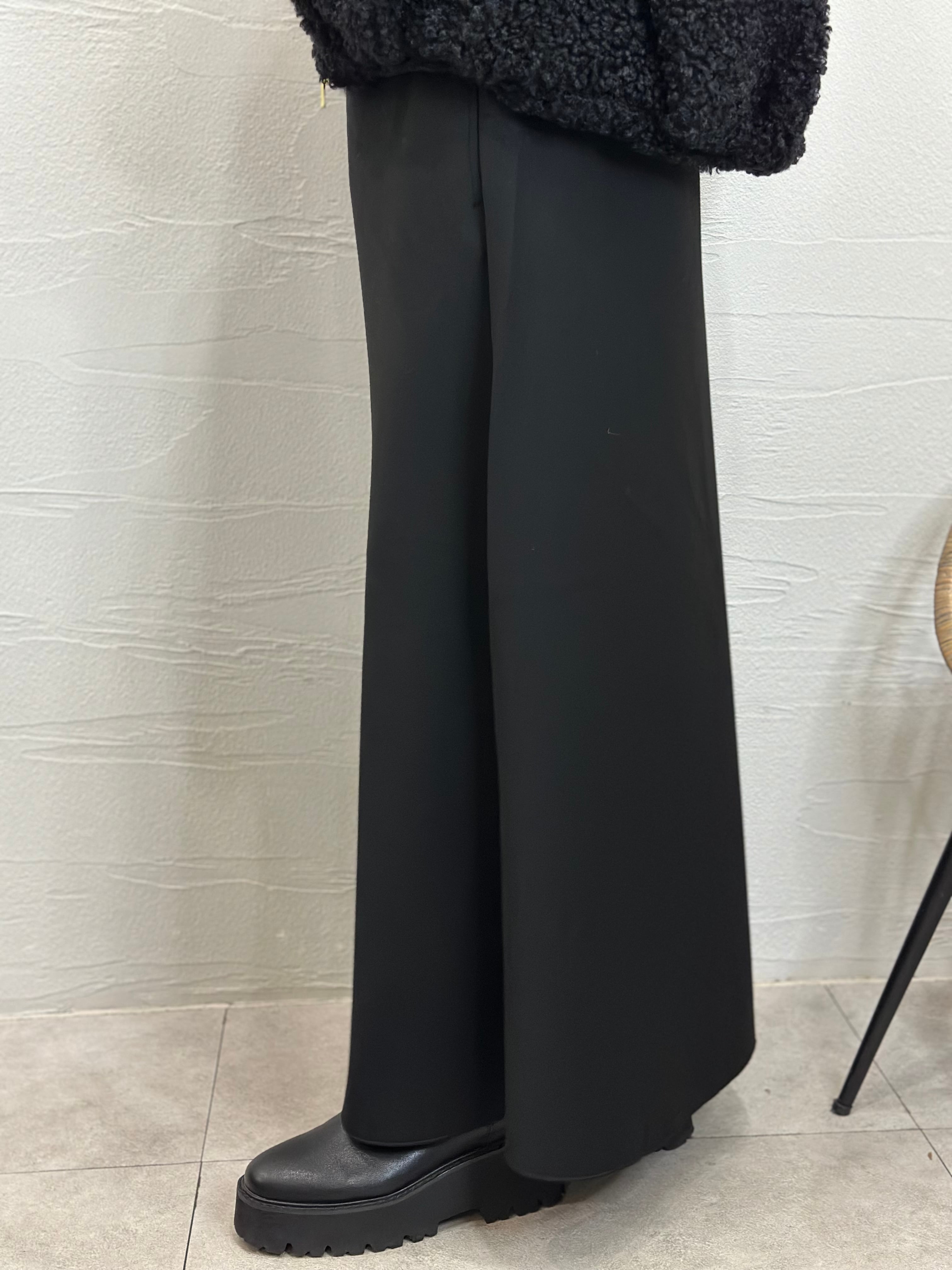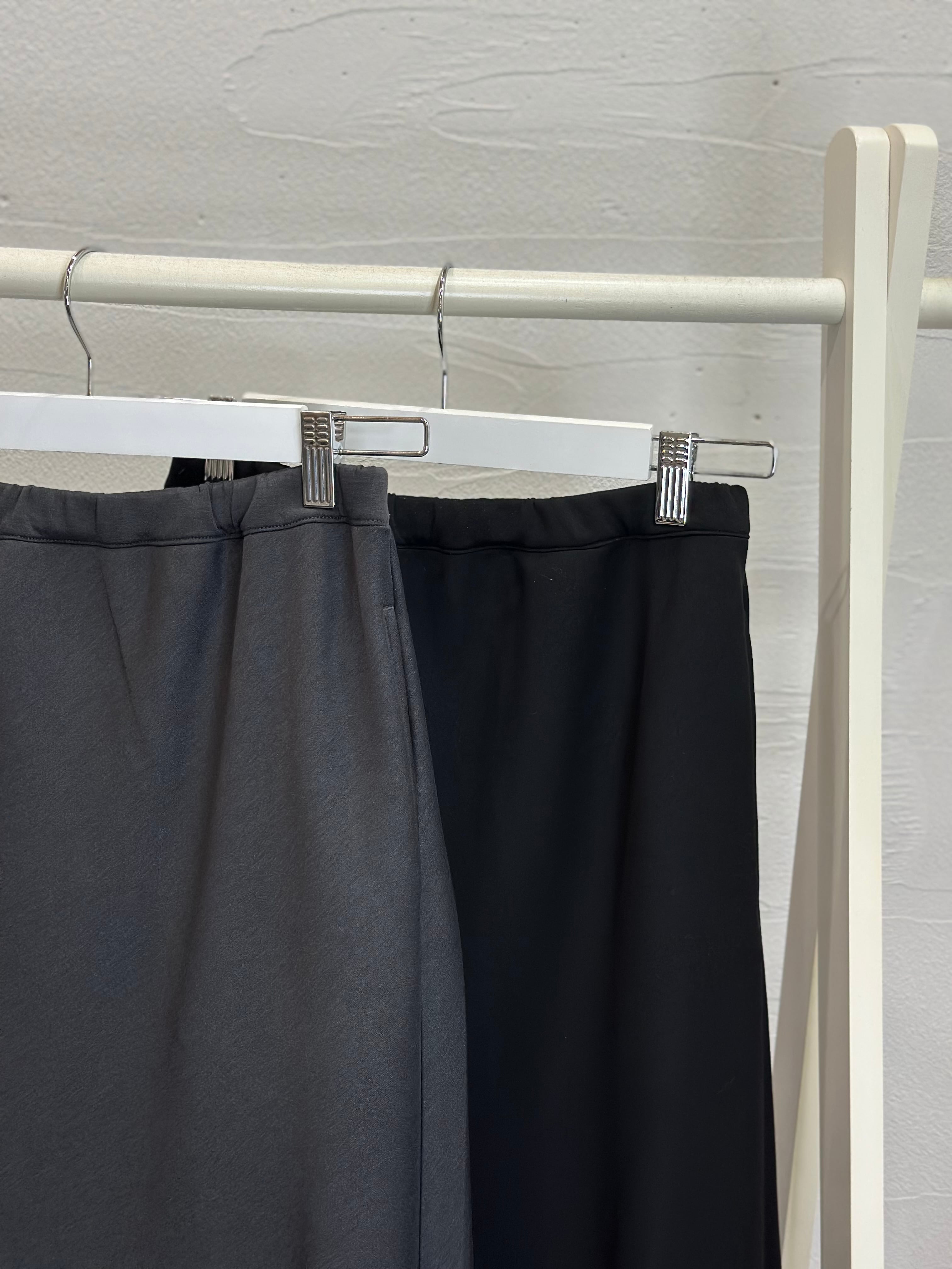 バイヤス生地で、柔らかな動きが出るフレアスカート。