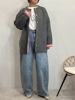 バイカラー配色が可愛いミドル丈ニットコーディガン。