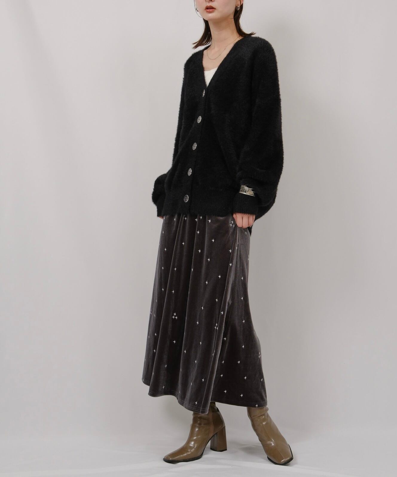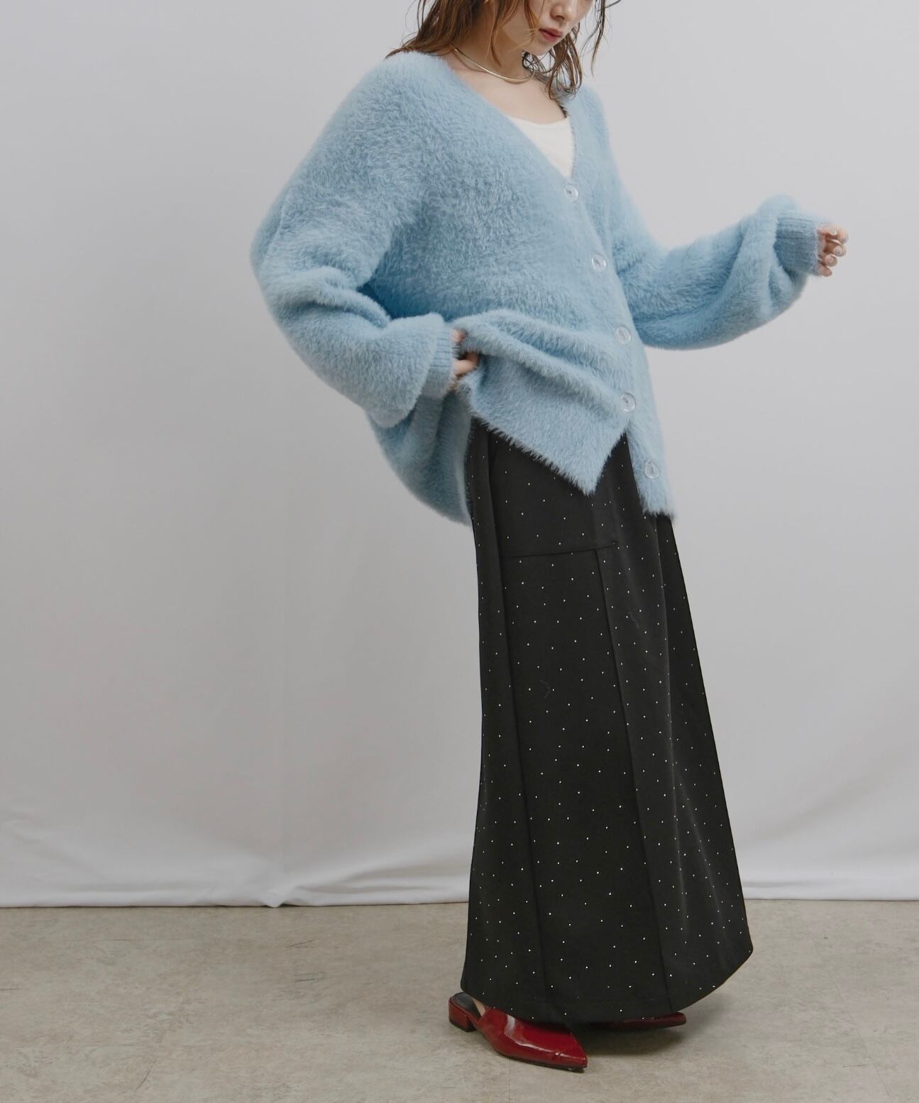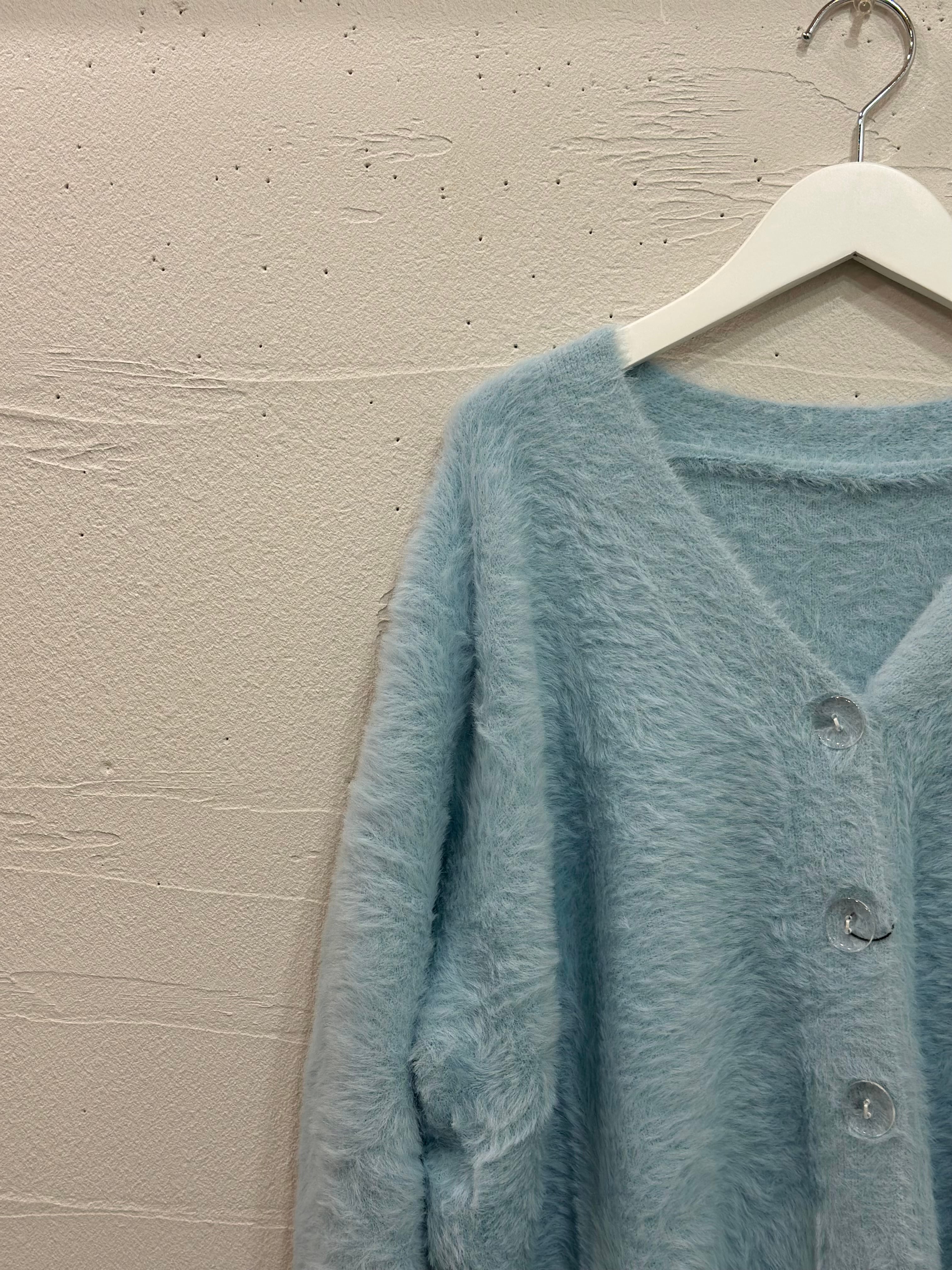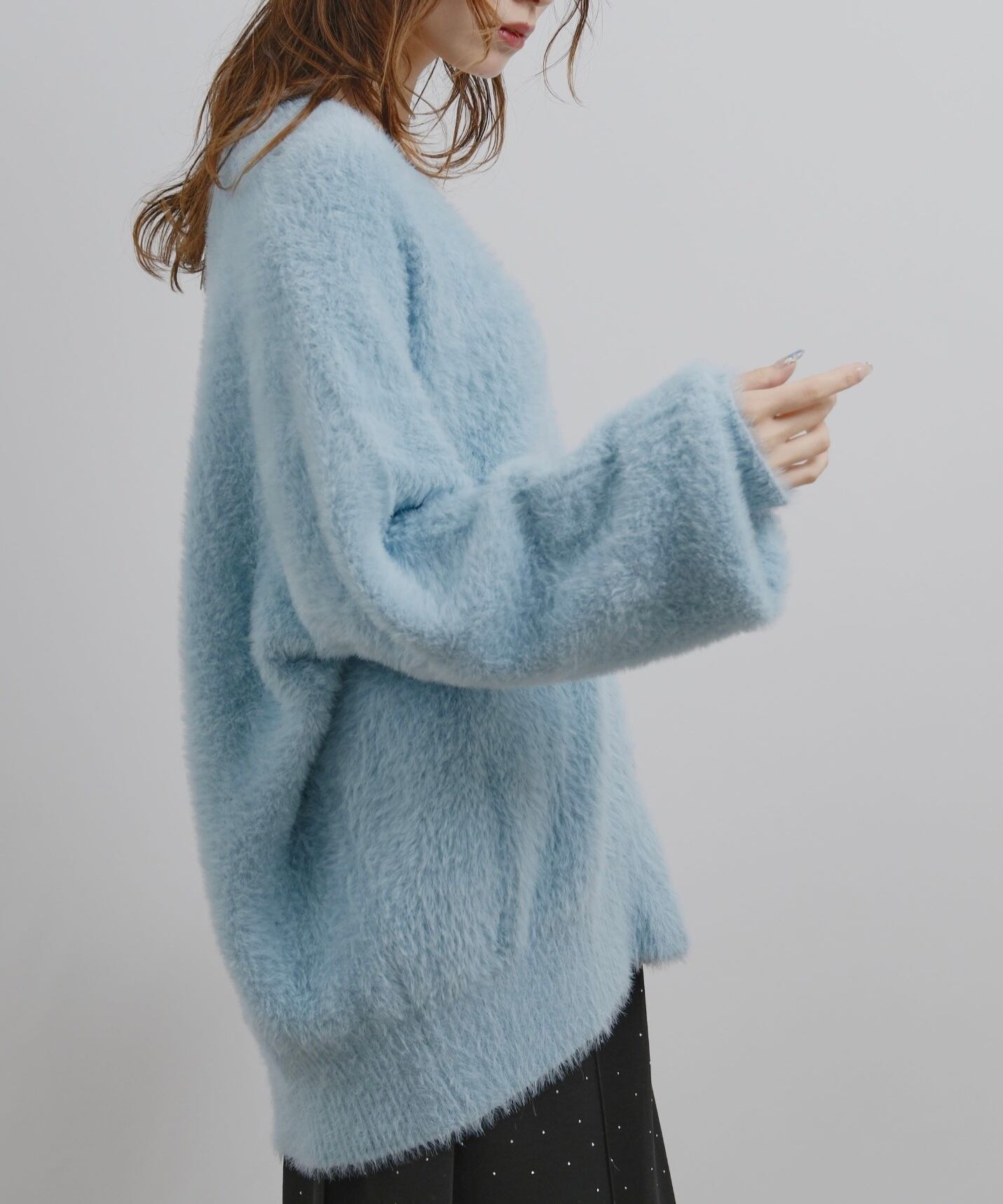 柔らかくて毛足の長いフェザーニットカーディガン。