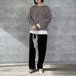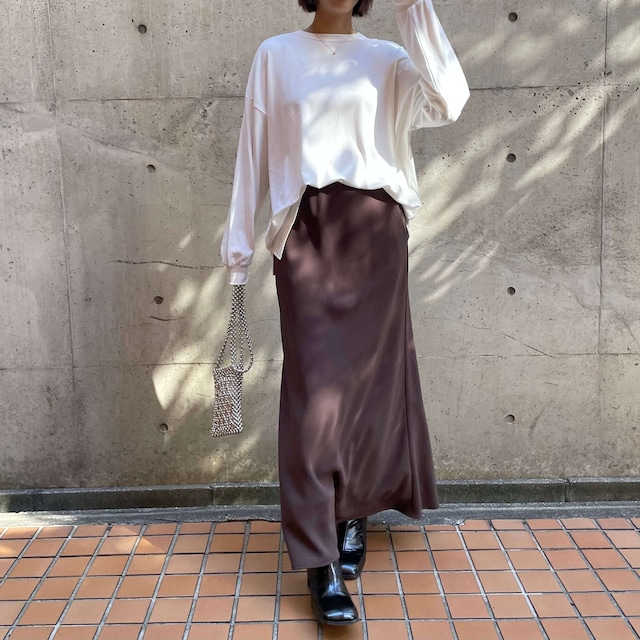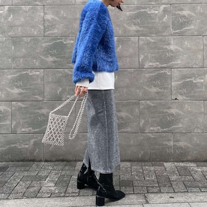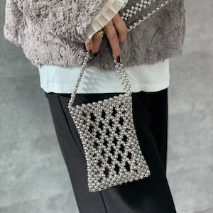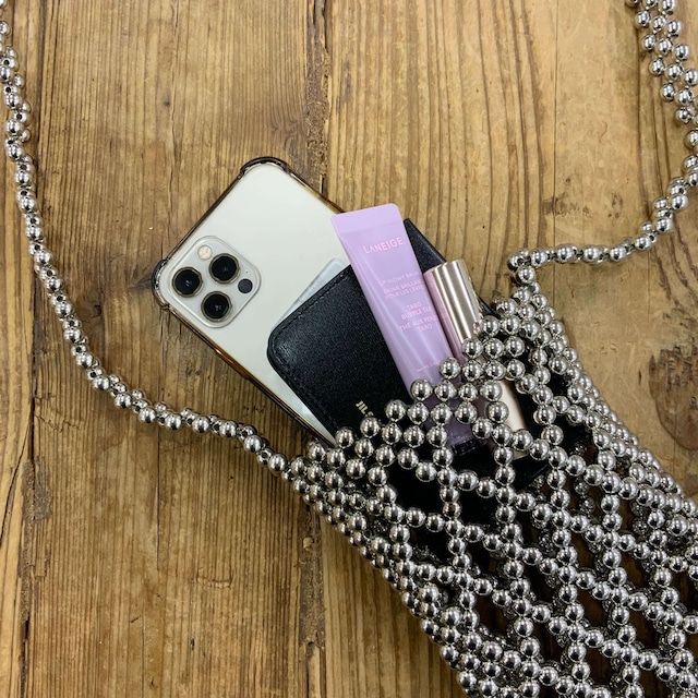 トレンド感がありながら、艶っぽく華やかなコーデに仕上がるビーズポシェット。