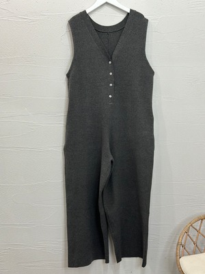 綿混の糸がジャガード編みされたニットオールインワン。