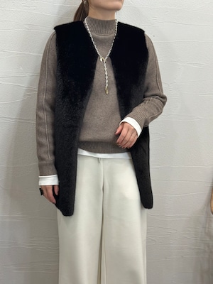 リブハイネックニットトップス