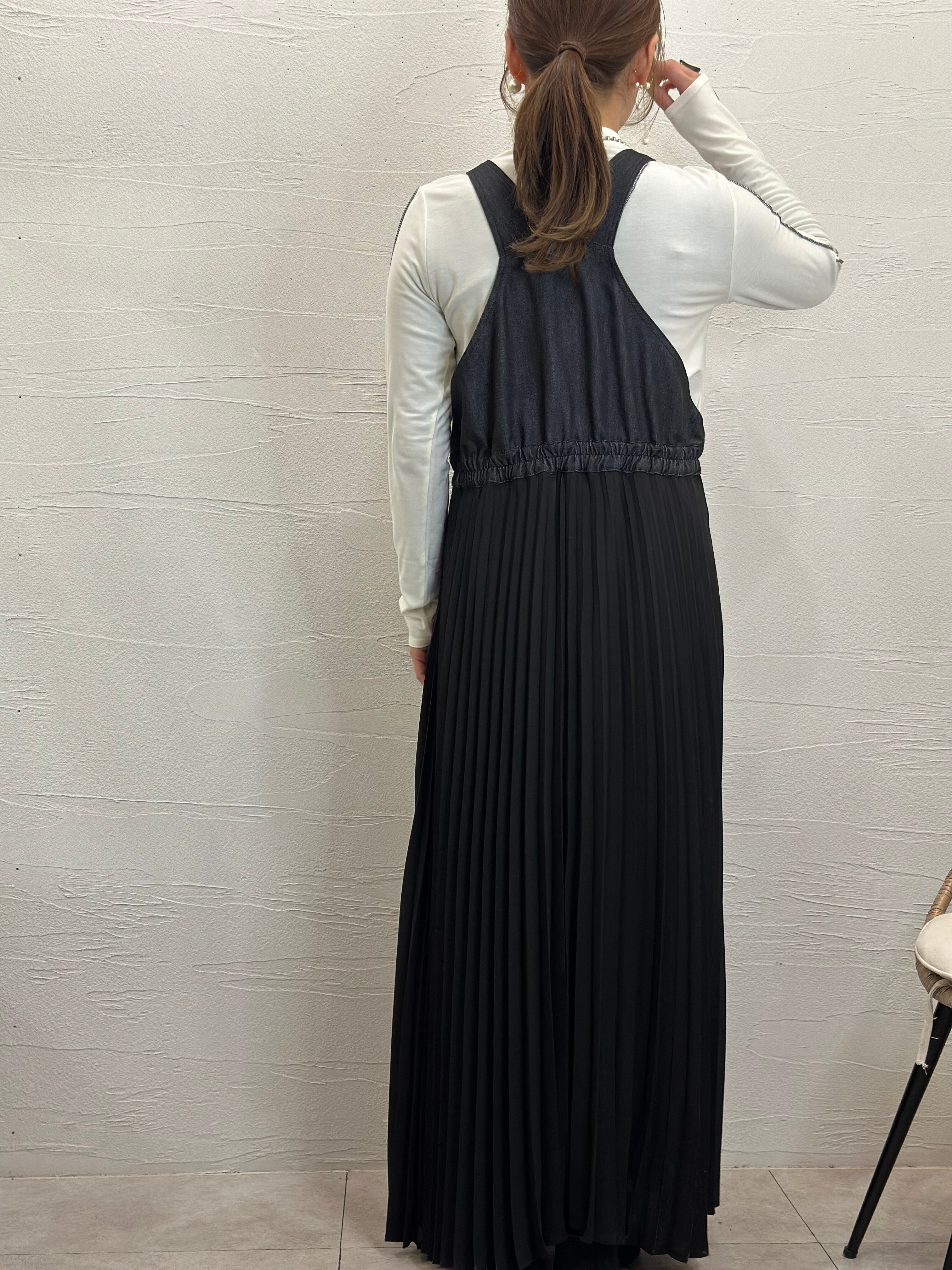 デニムとプリーツスカートがドッキングされたデザインジャンスカ。