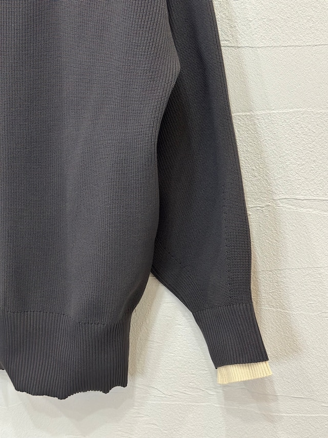 襟ぐりの内側と袖口リブ先が二重に配色されたオシャレな1枚に。