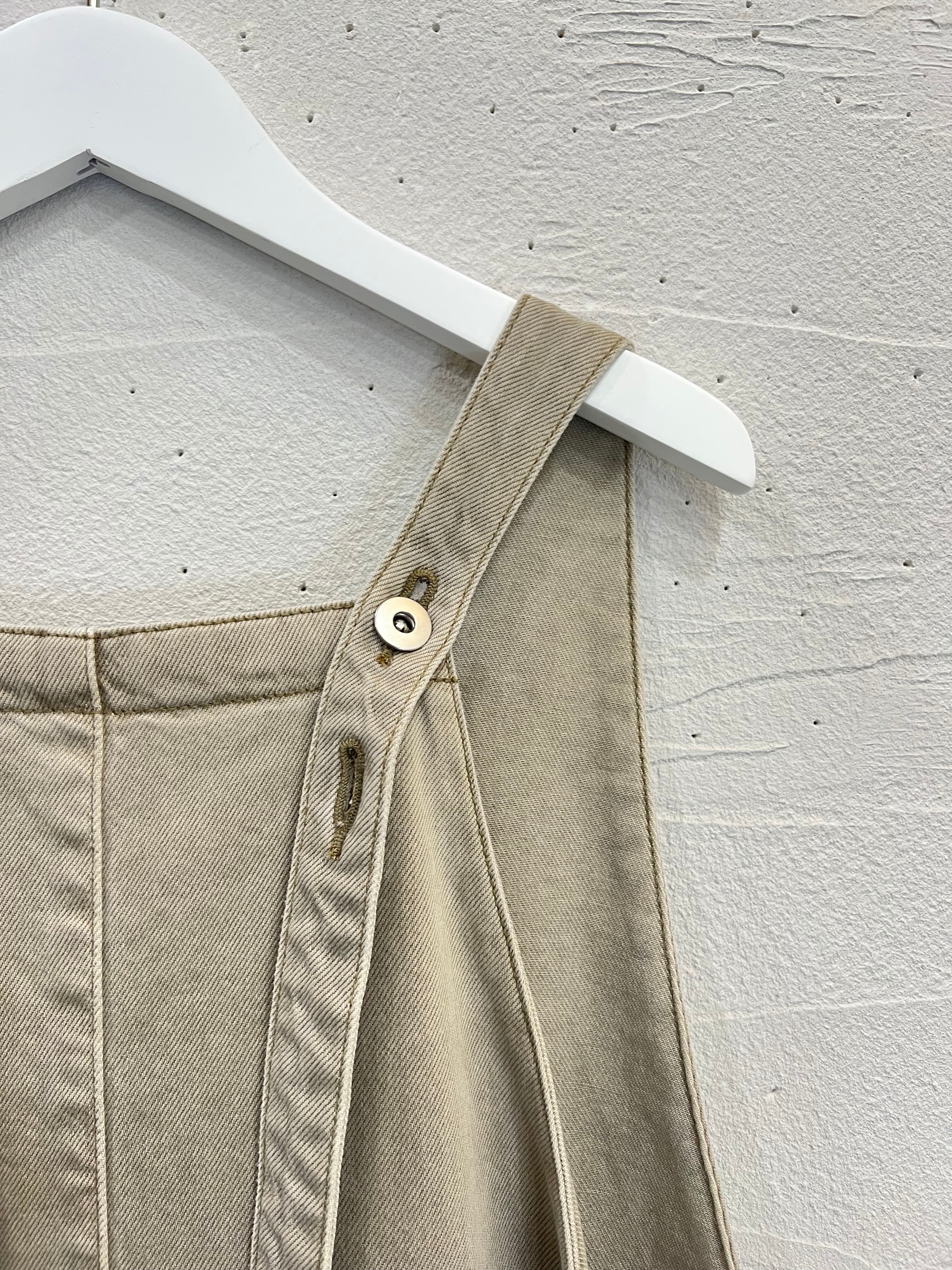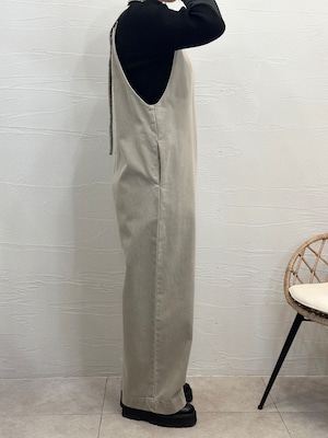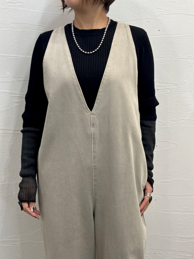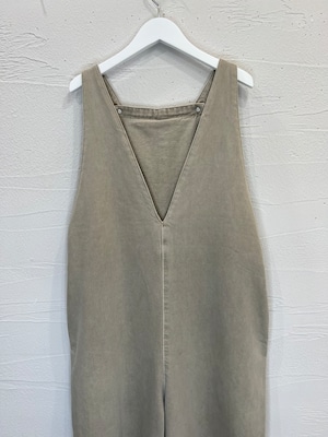 深めのVカッティングが大人カジュアルな印象のサロペット。