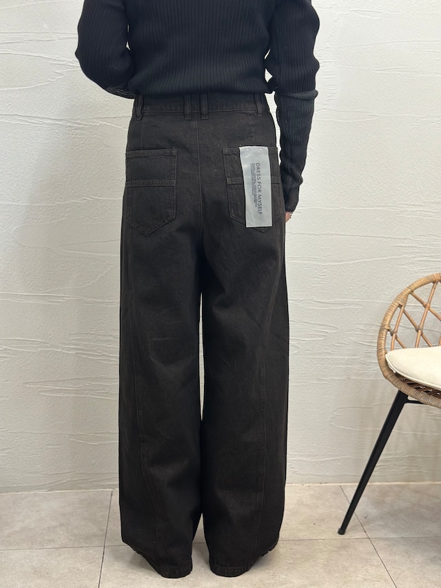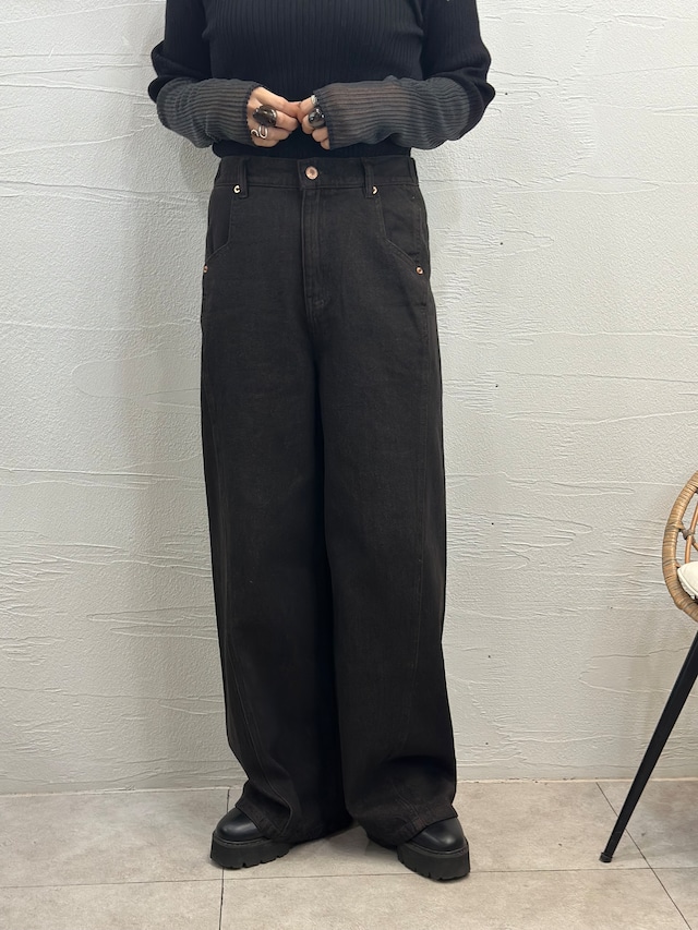 サイドから裾中心に向けて切替え入りでワイドシルエットながらスッキリ感もあり、スタイルアップが望めます。