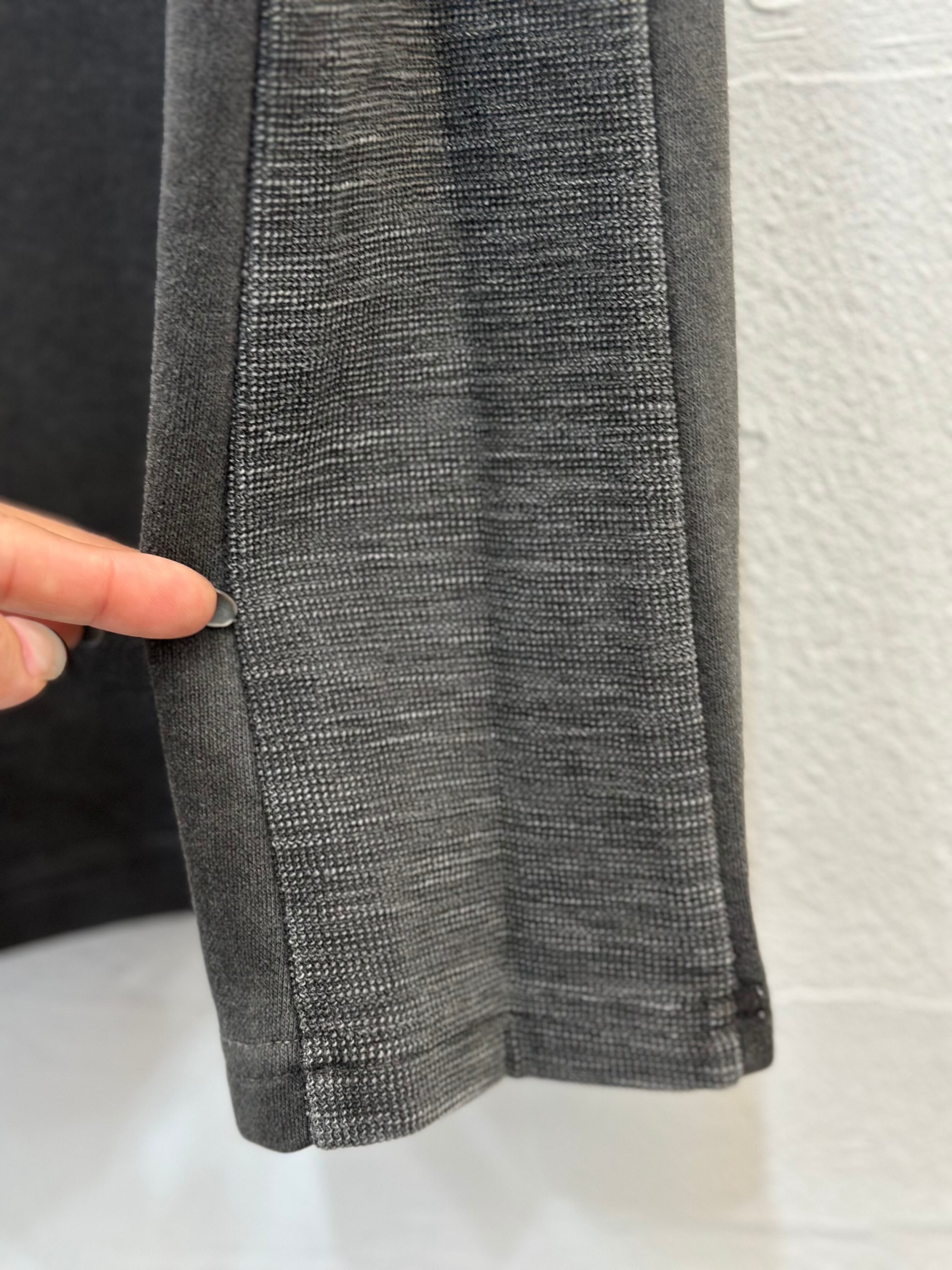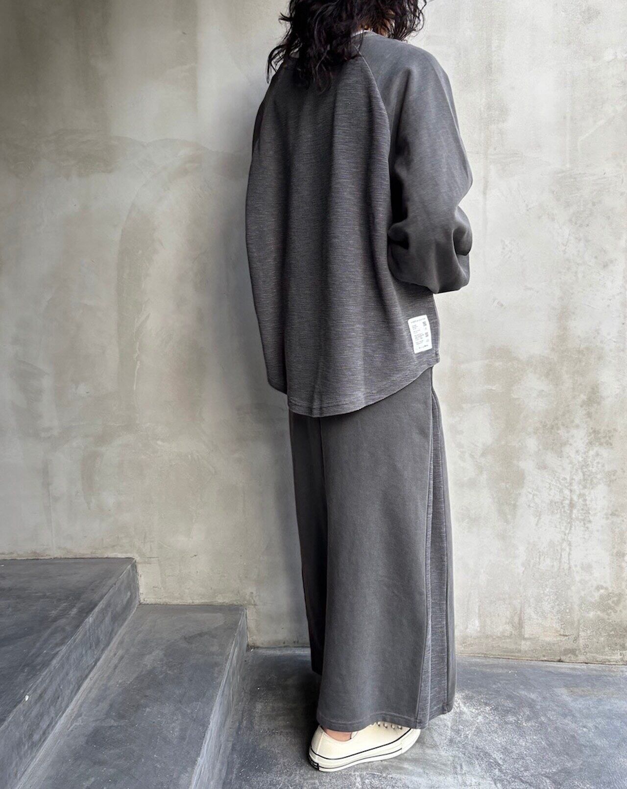 スラブ生地の裏表を使いサイドにタックデザイン(タック部分がスラブ生地)で動きのあるデザインの1枚。