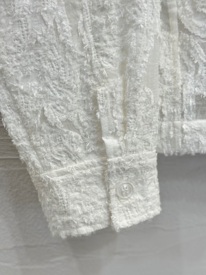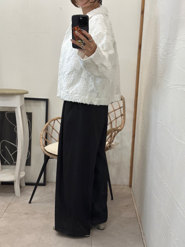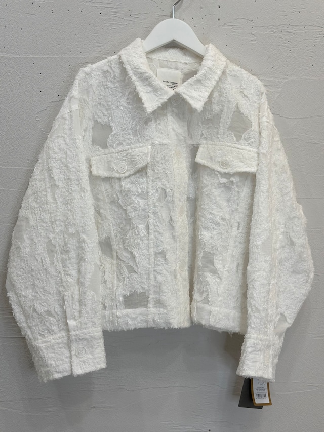 毛足のあるカットジャガード素材が目を惹くジャケット。