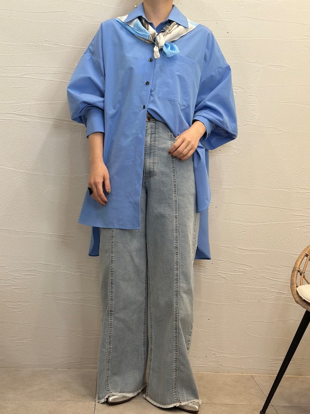 トレンドの大判ストールは頭に巻いたり、首に巻いたり、鞄につけたりと使い勝手自由で万能アイテム。
