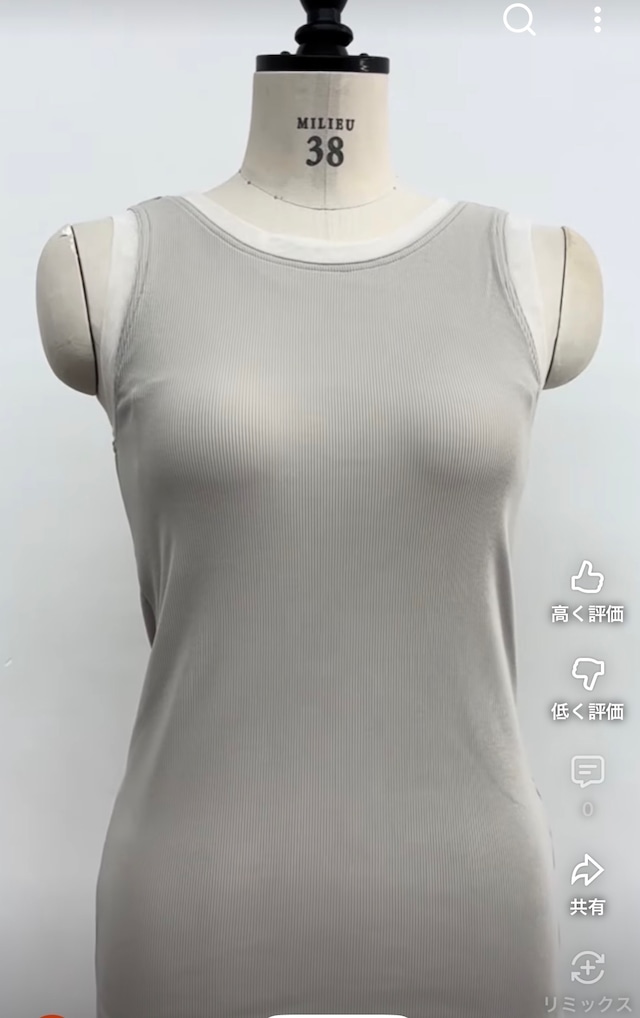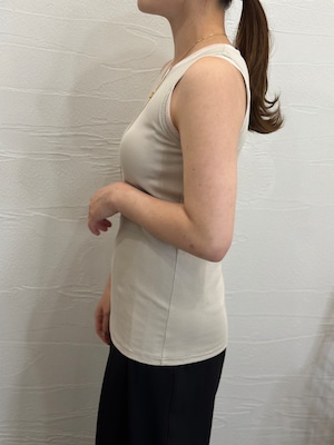 シンプルなデザインながらシャツやシアートップスのインナーに合わせるだけでこなれた雰囲気に。