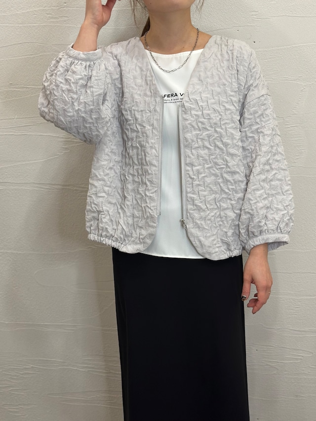 ポコポコとした凹凸感のあるジャガード素材が特徴的な春ブルゾン。