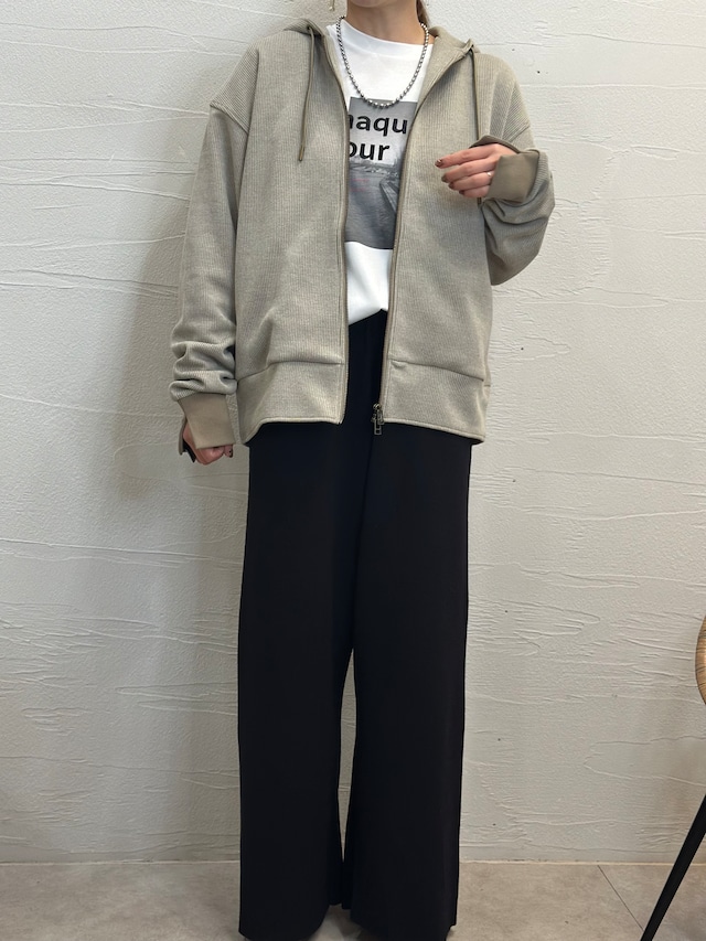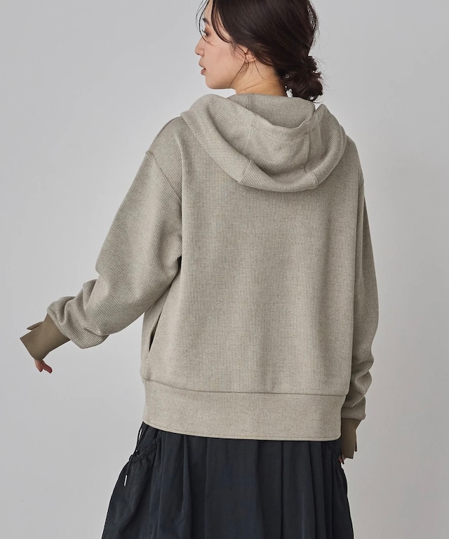 小さすぎず大きすぎず、絶妙なサイズ感で着用できるジップパーカー。