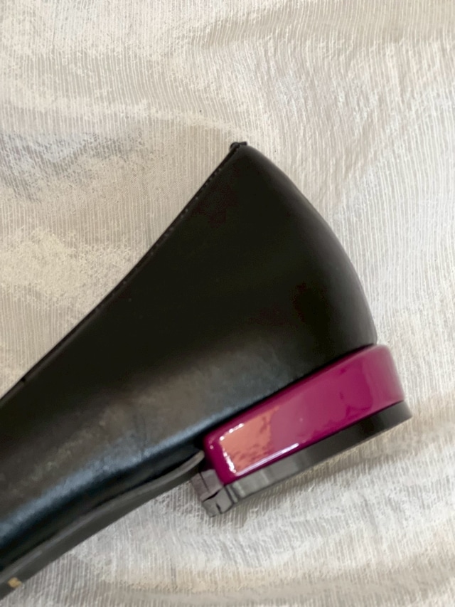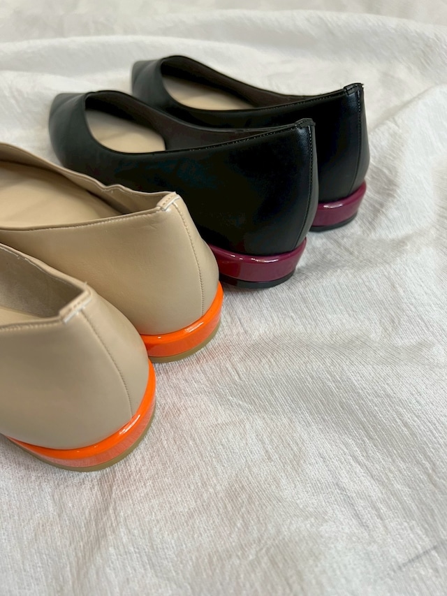 配色カラーのヒールがポイントになったフラットパンプス。