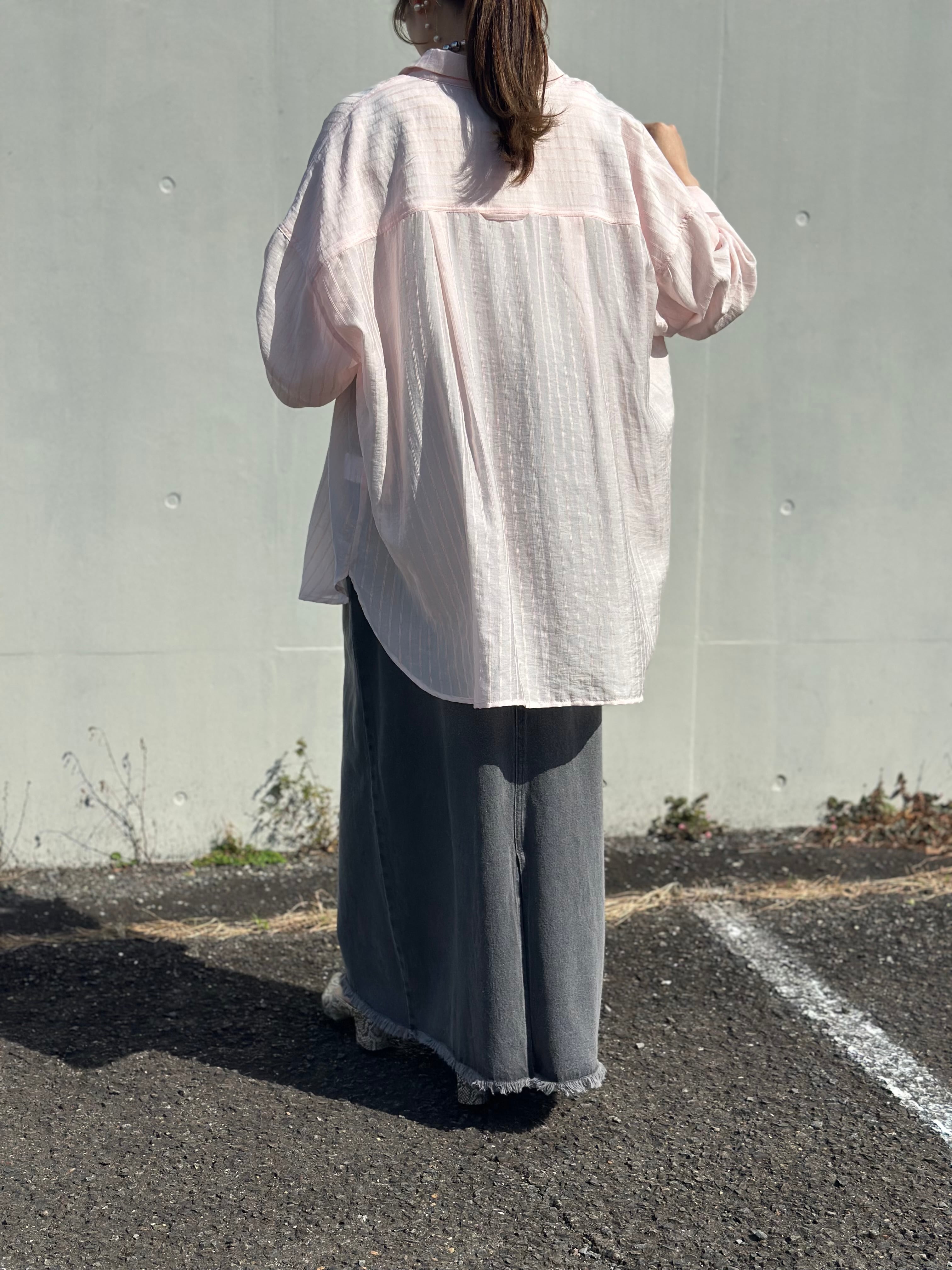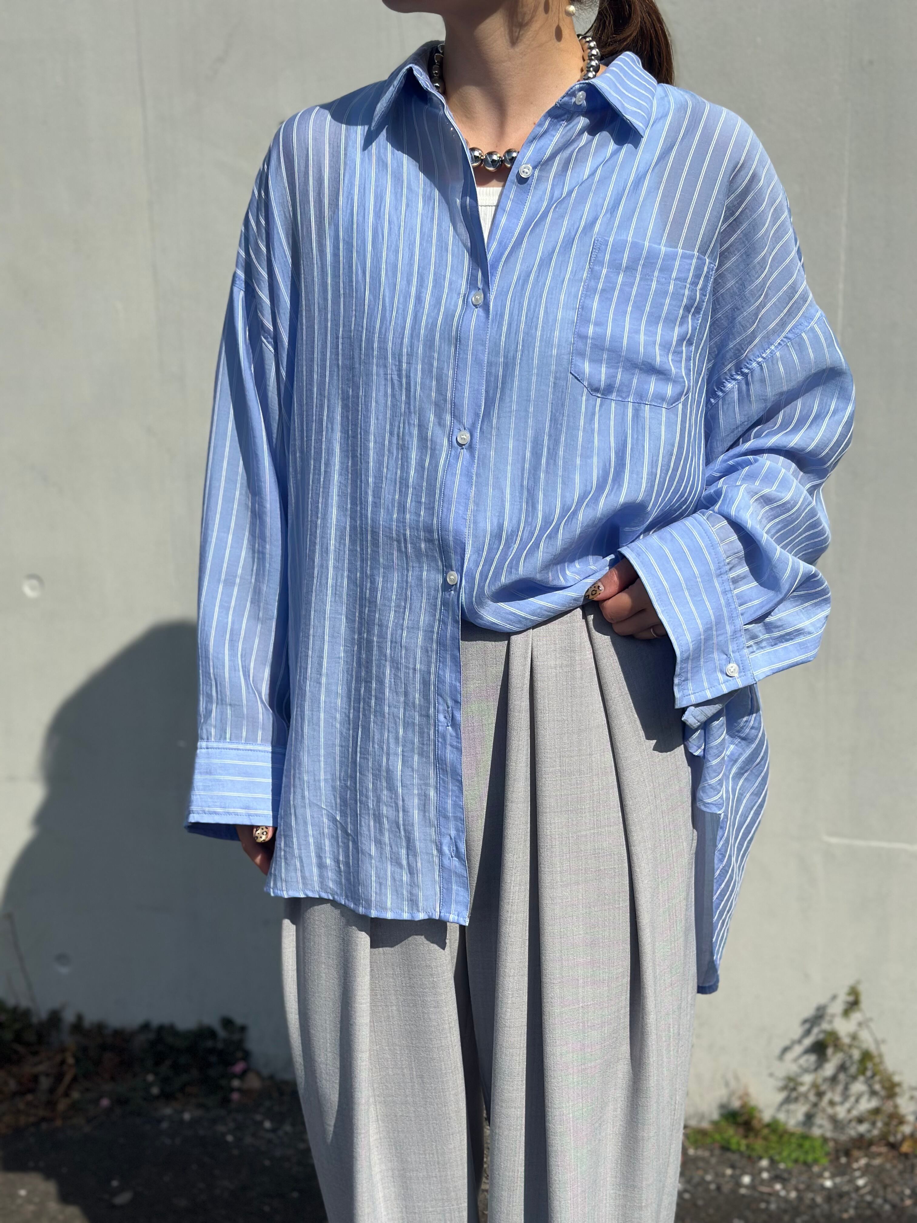 シアー感が柔らかい印象なので、今までのストライプシャツをアップデートしたい方におススメです。
