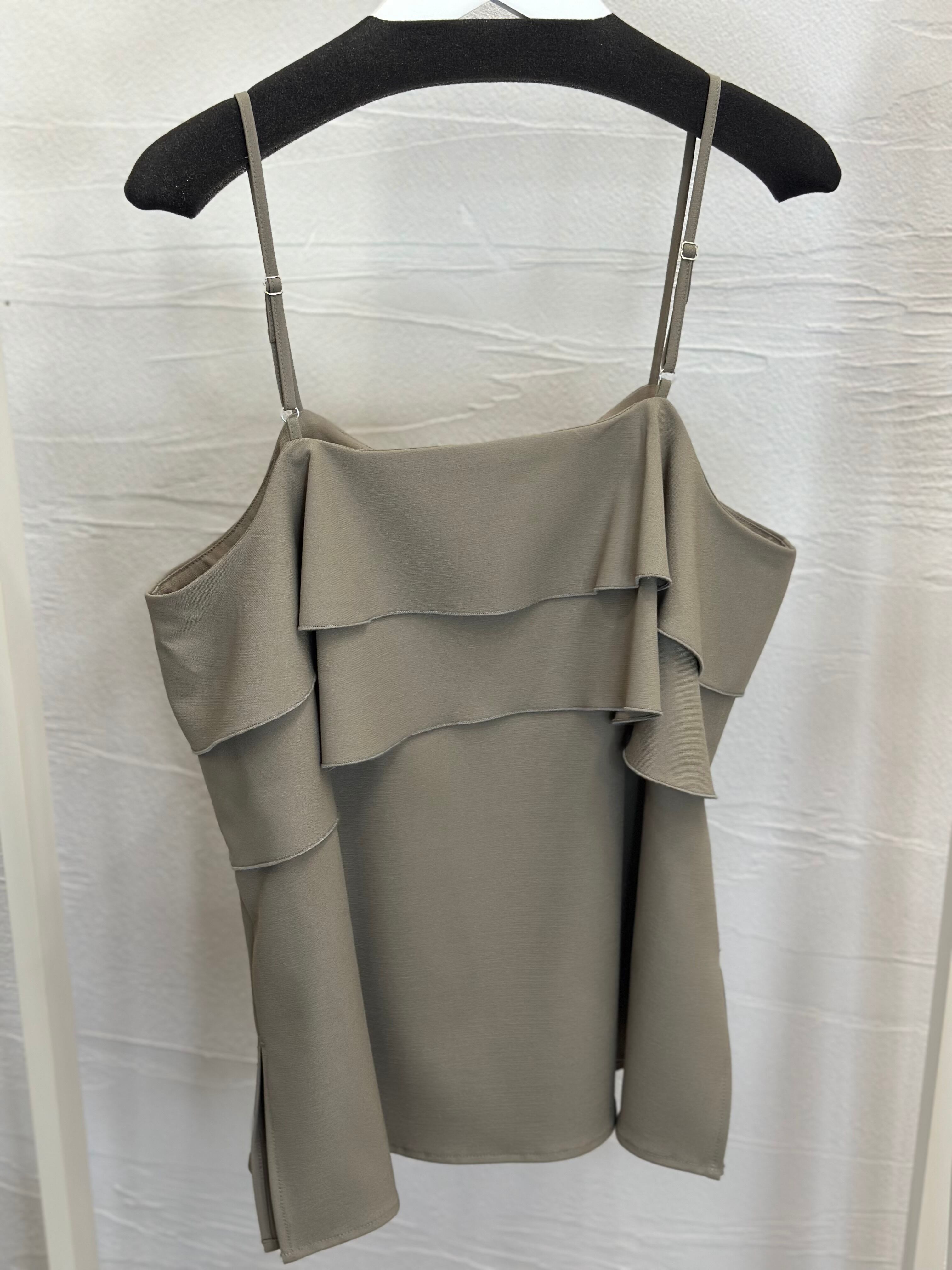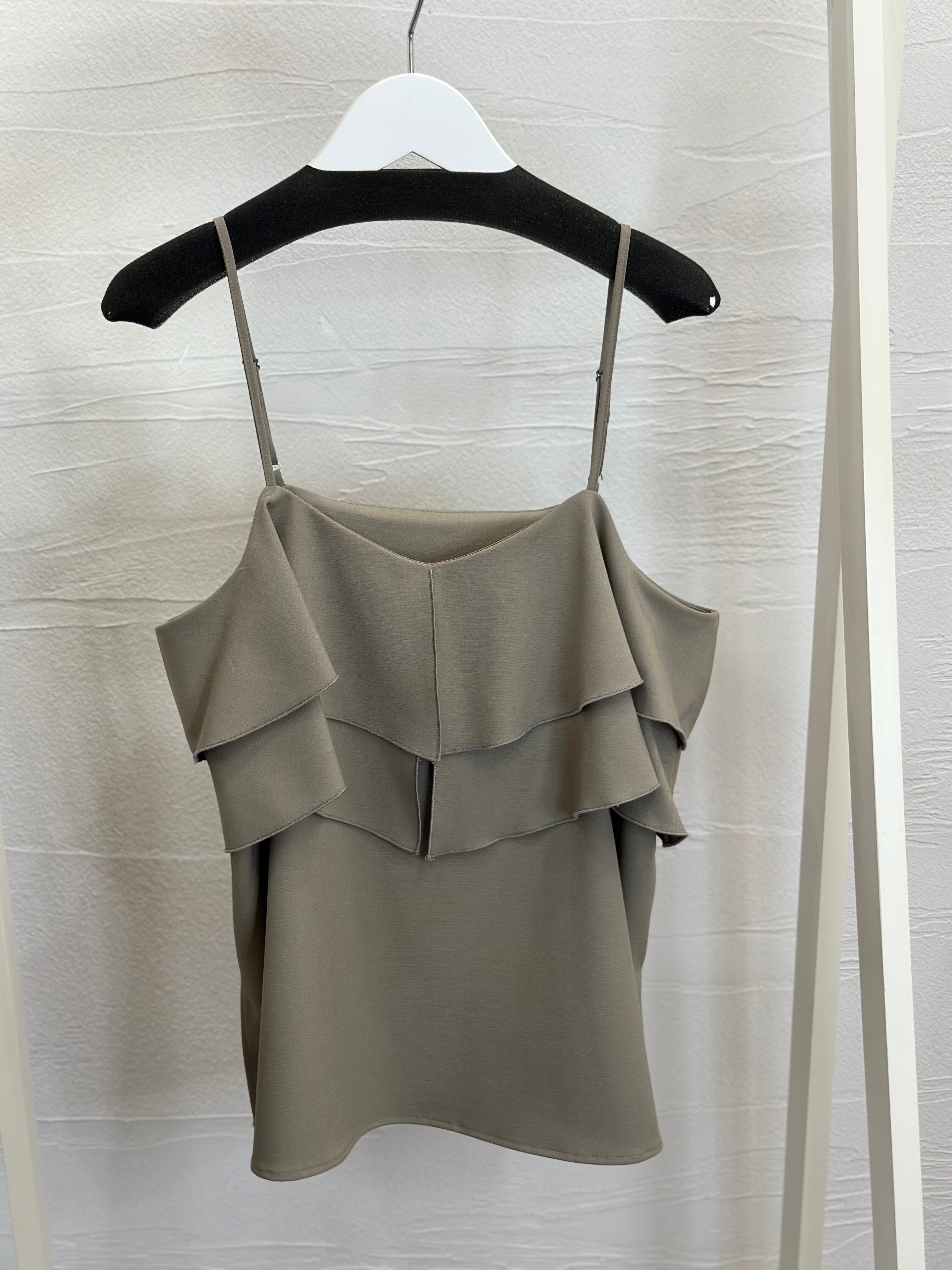 甘くなりがちなフリルキャミソールをドライタッチな素材で大人っぽく仕上げられた1枚。
