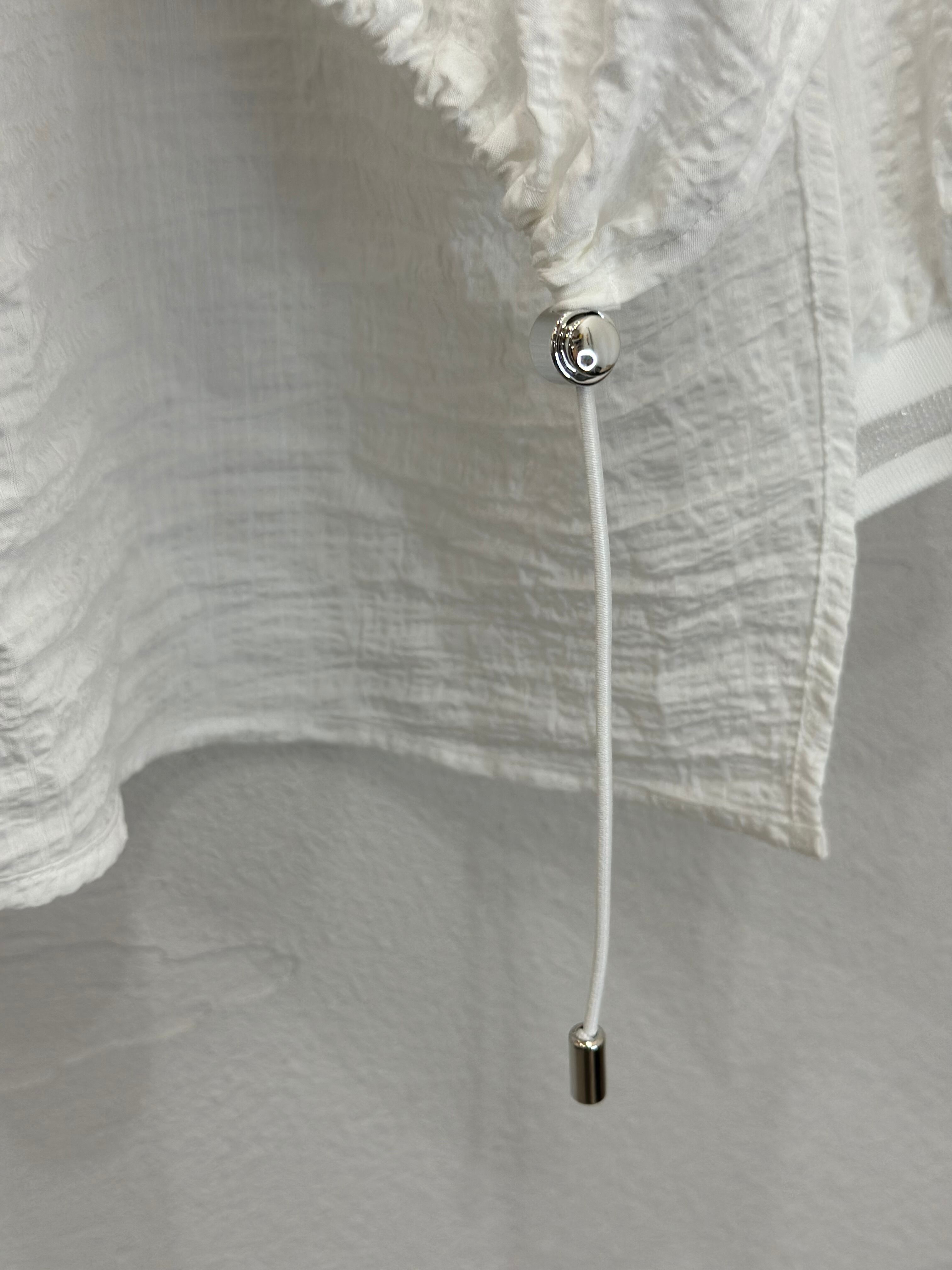 裾のドロストでシルエット変化を楽しめるデザインシャツ。