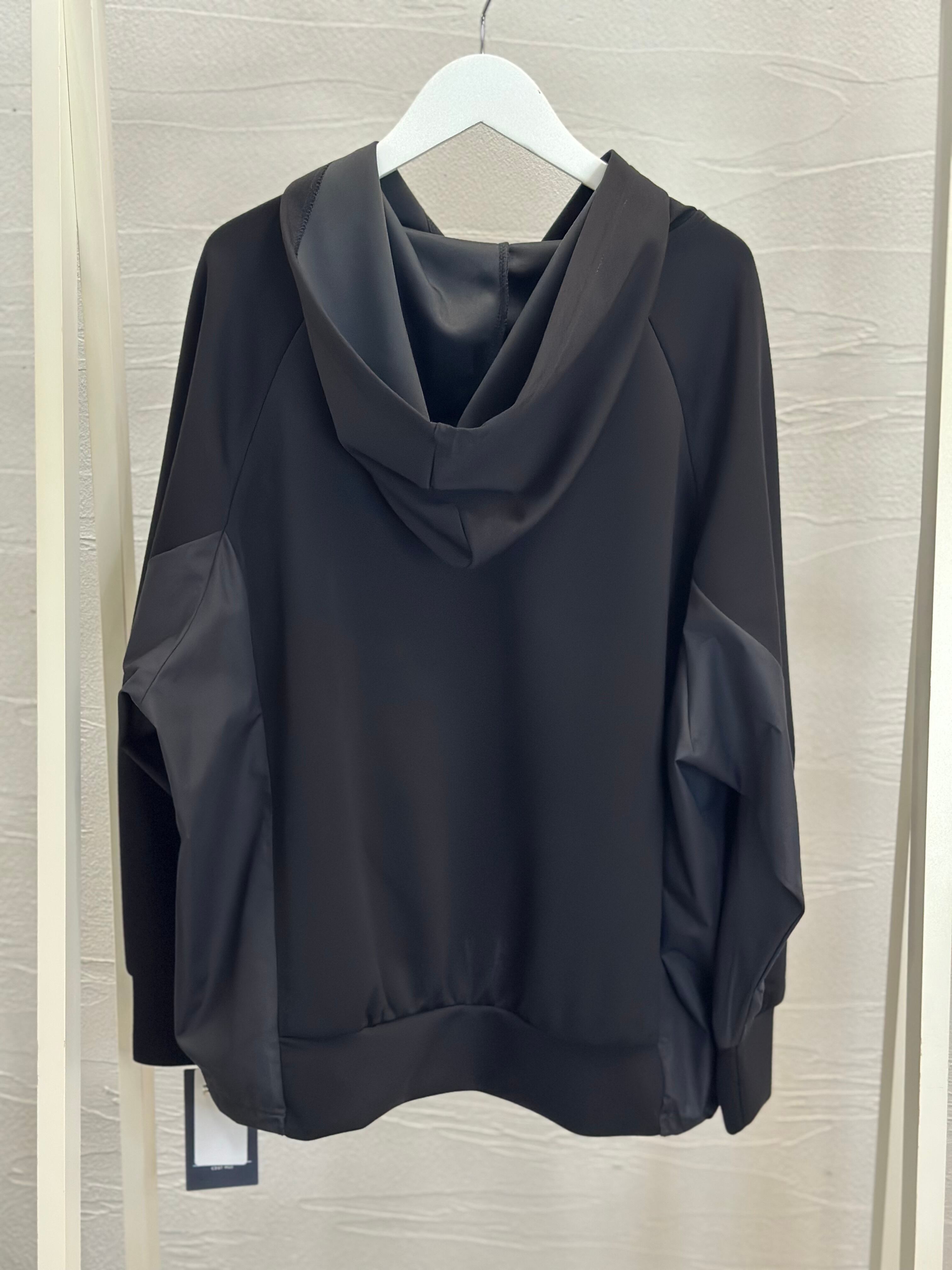 脇から袖にかけての異素材使いと裾のドロストデザインがポイントに。