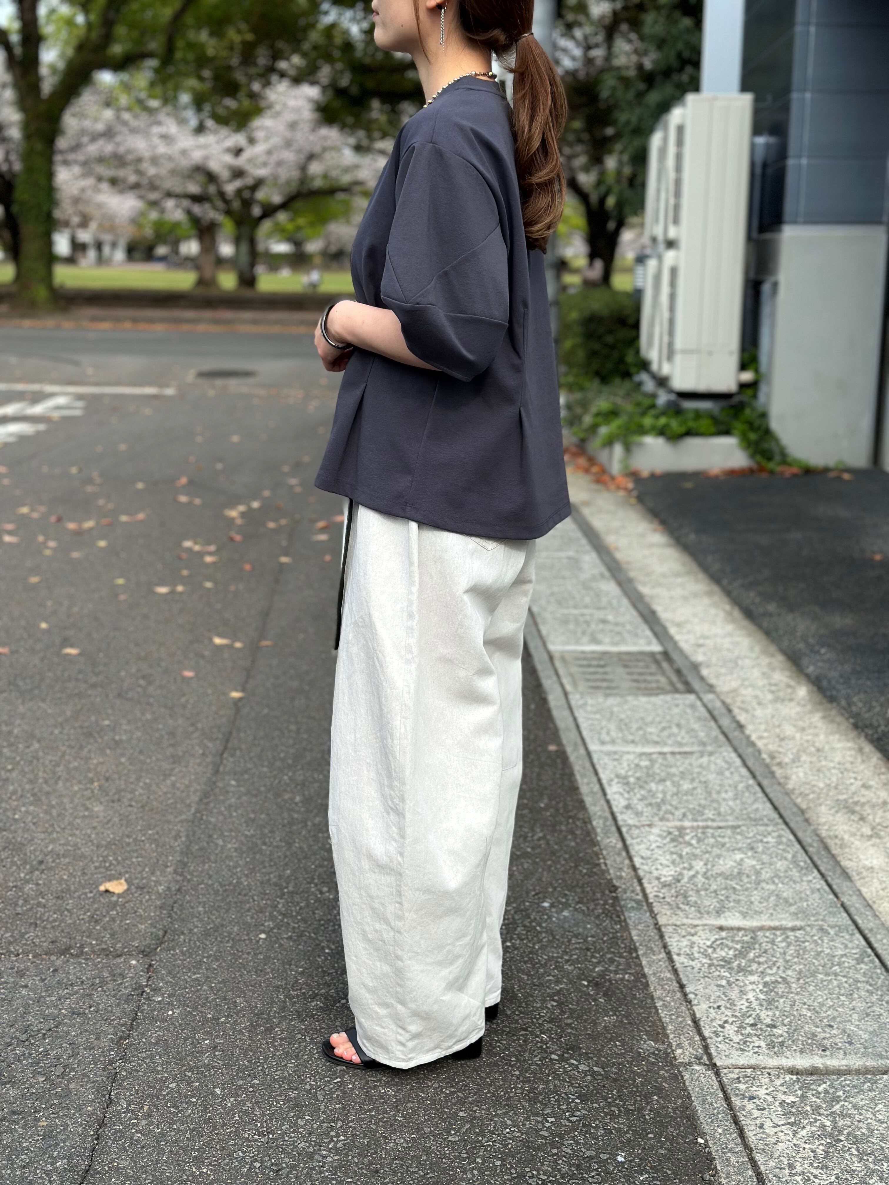 ウエストはシェイプデザインになっており、着痩せ効果も◎