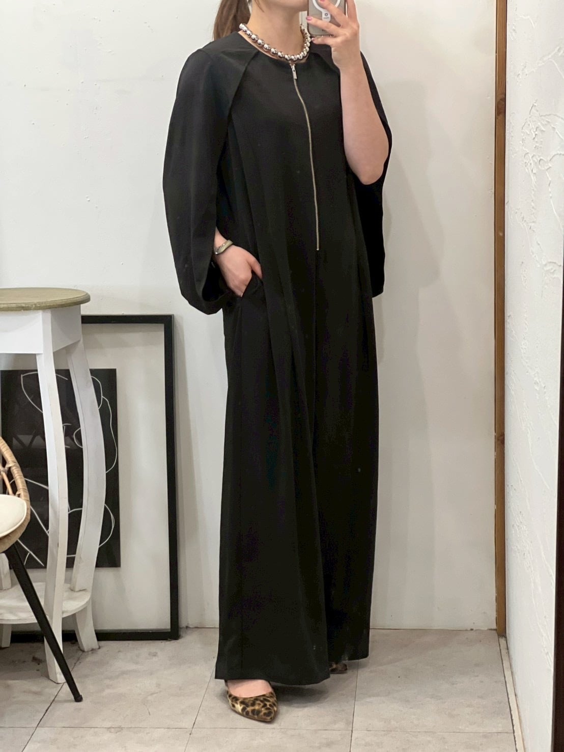 ケープデザインの上品な雰囲気をそのまま活かしたサロペット。