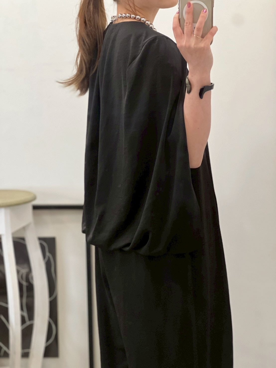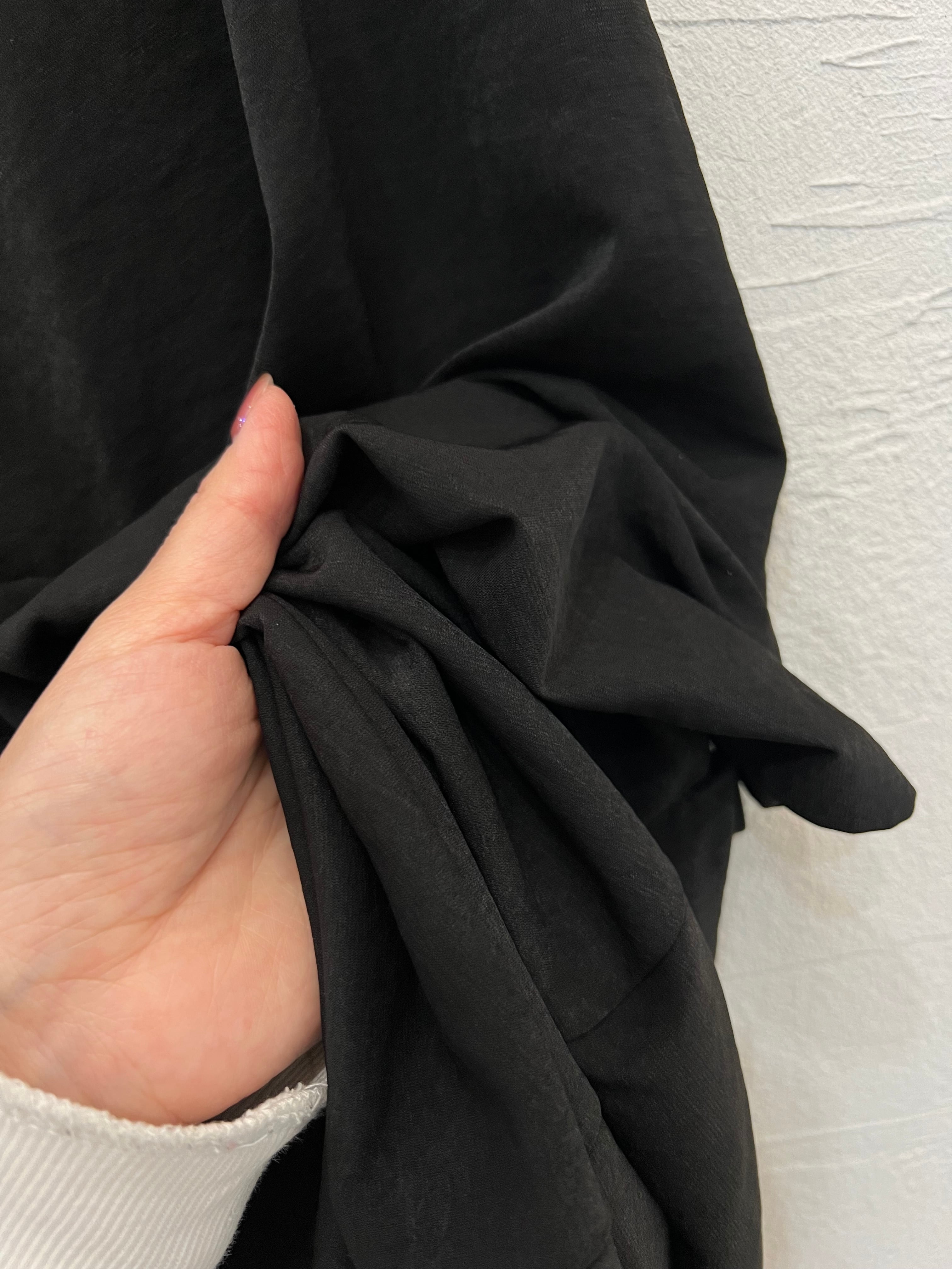 程よいツヤ感となめらかなドレープ性ある素材がリュクス感あるスタイルに格上げしてくれます。
