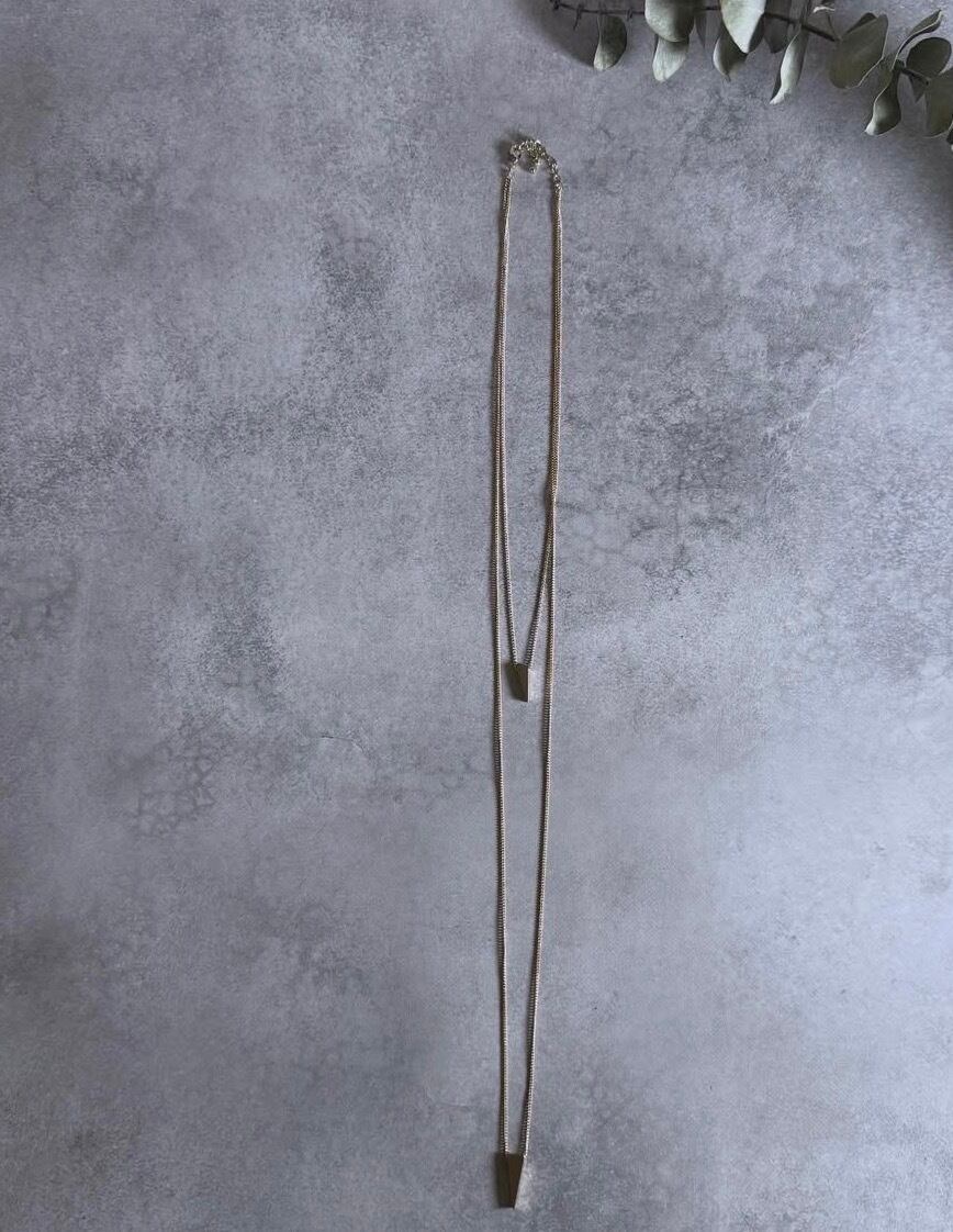 華奢な2連チェーンでコーディネートを邪魔しやいネックレスです。