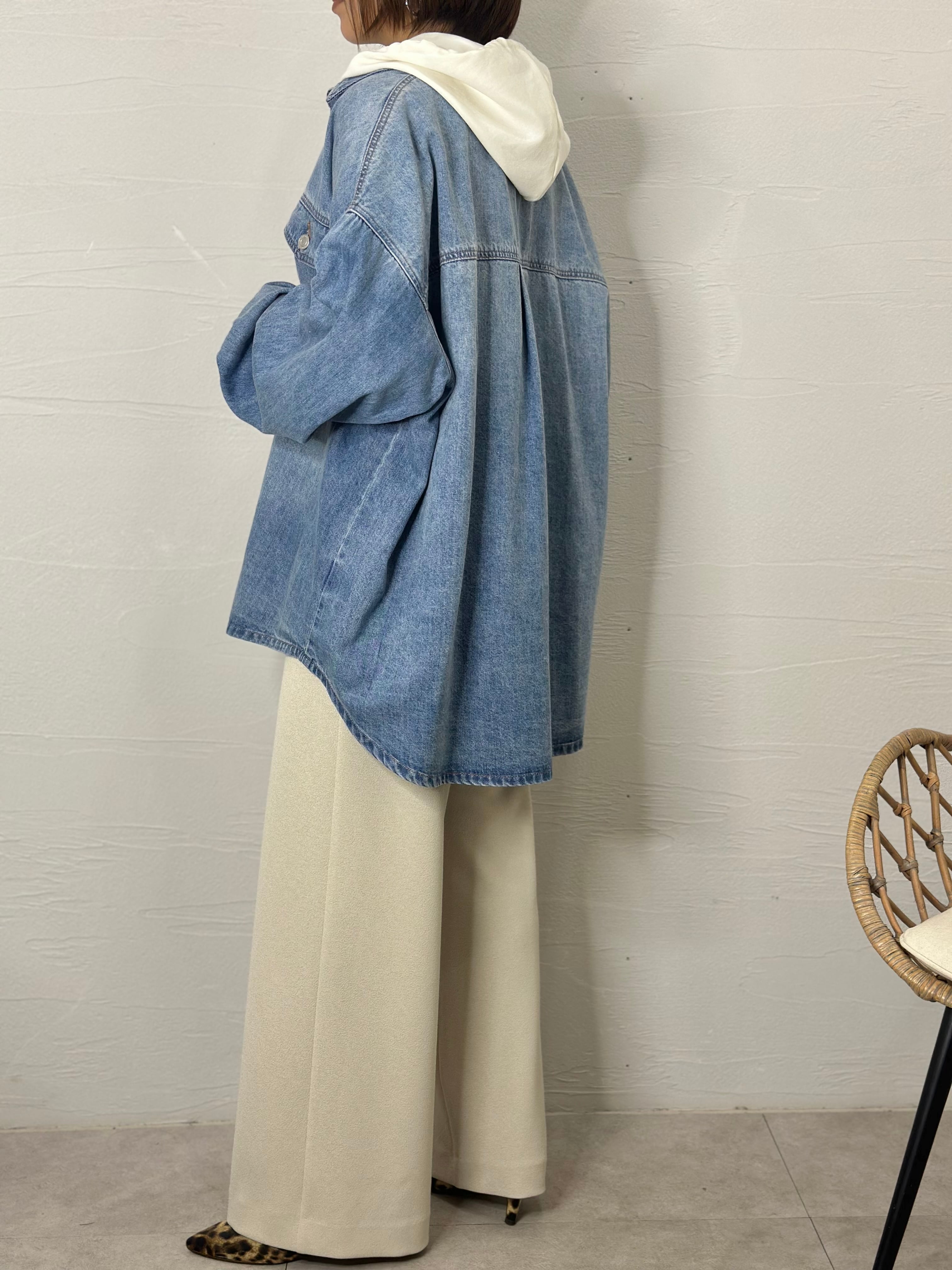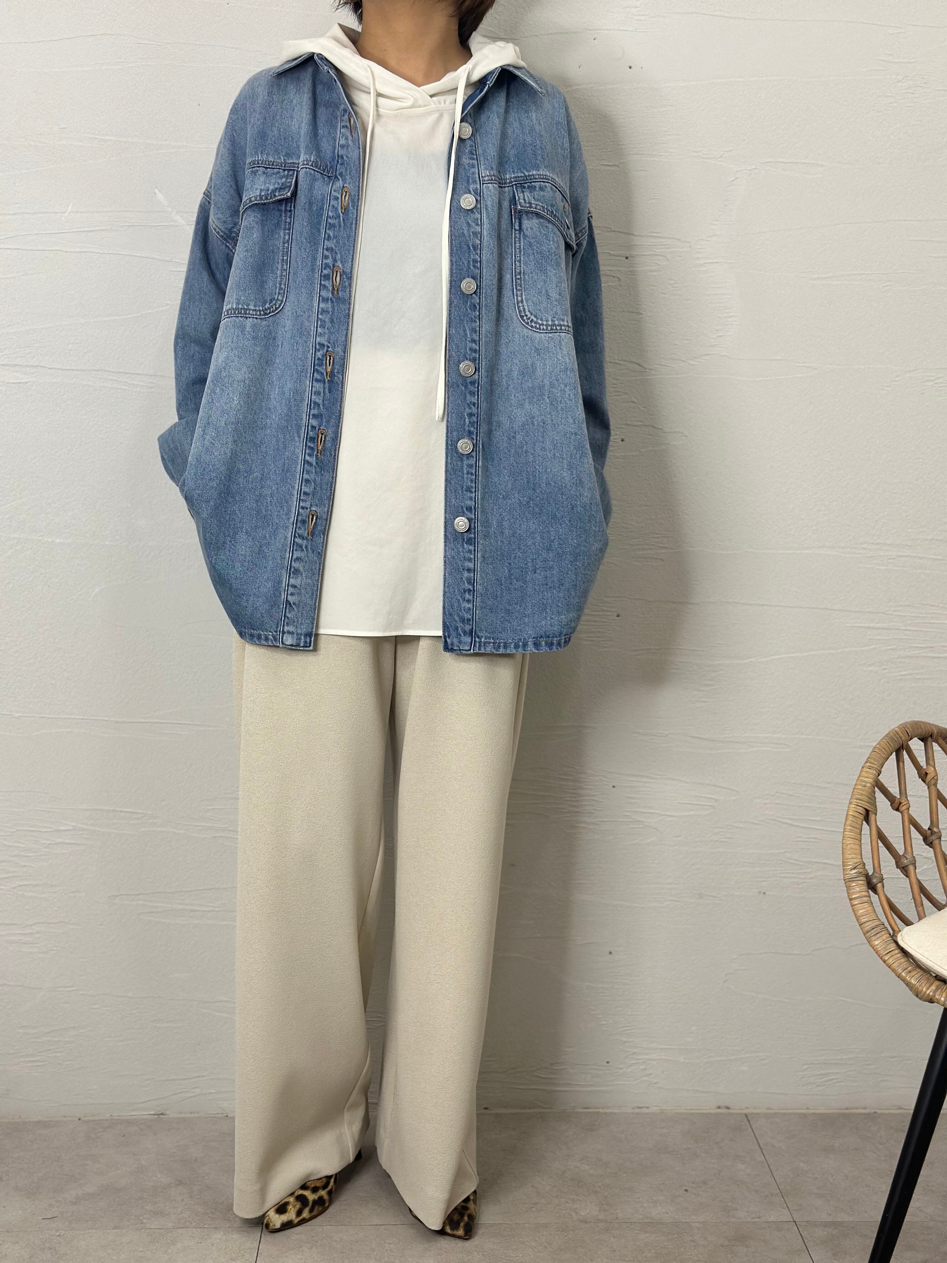 同素材のトップスと合わせたセットアップスタイルもオススメ。