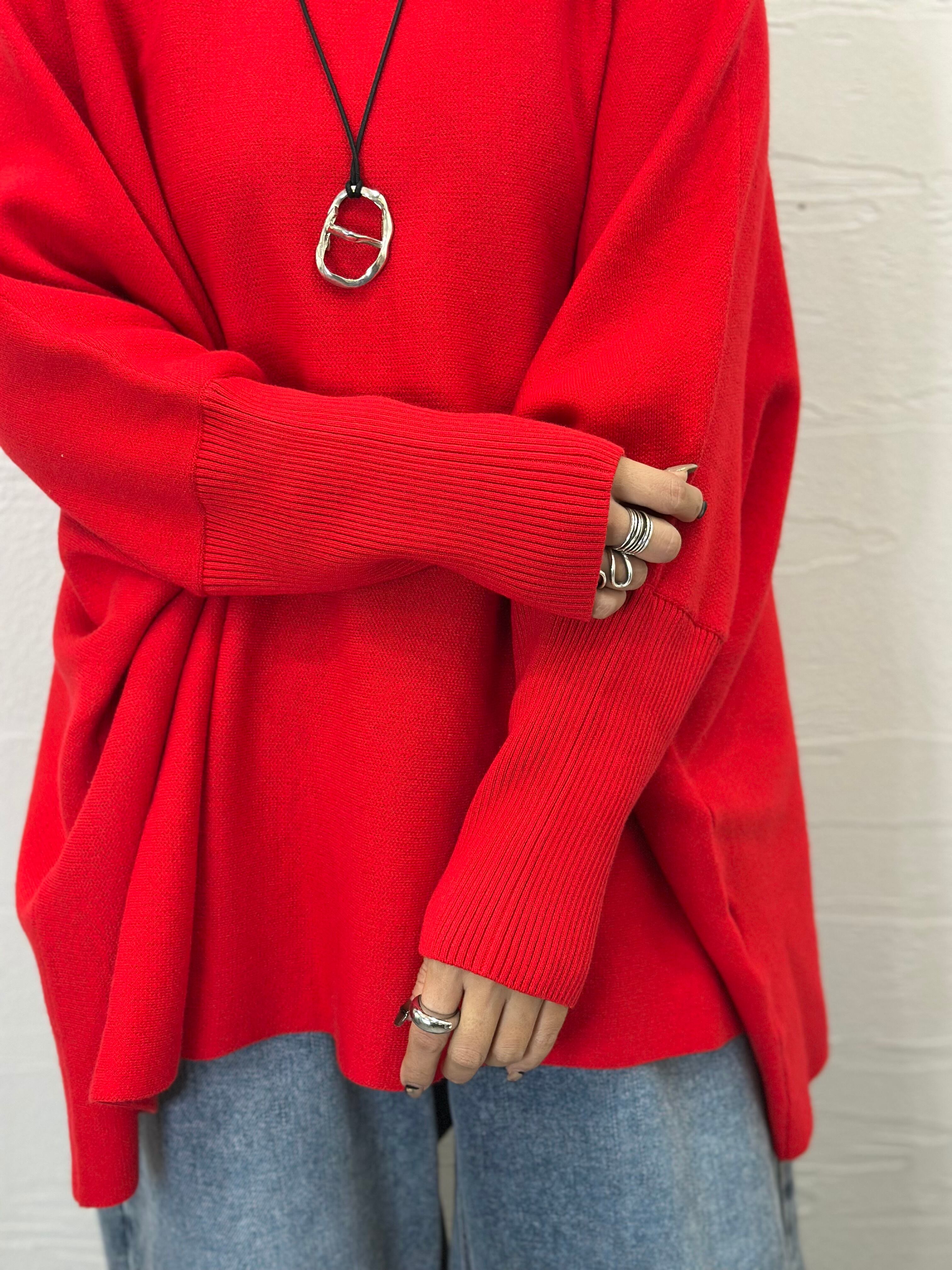 柔らかく落ち感があるので、カジュアルながらも大人にきまるオーバーニットです。